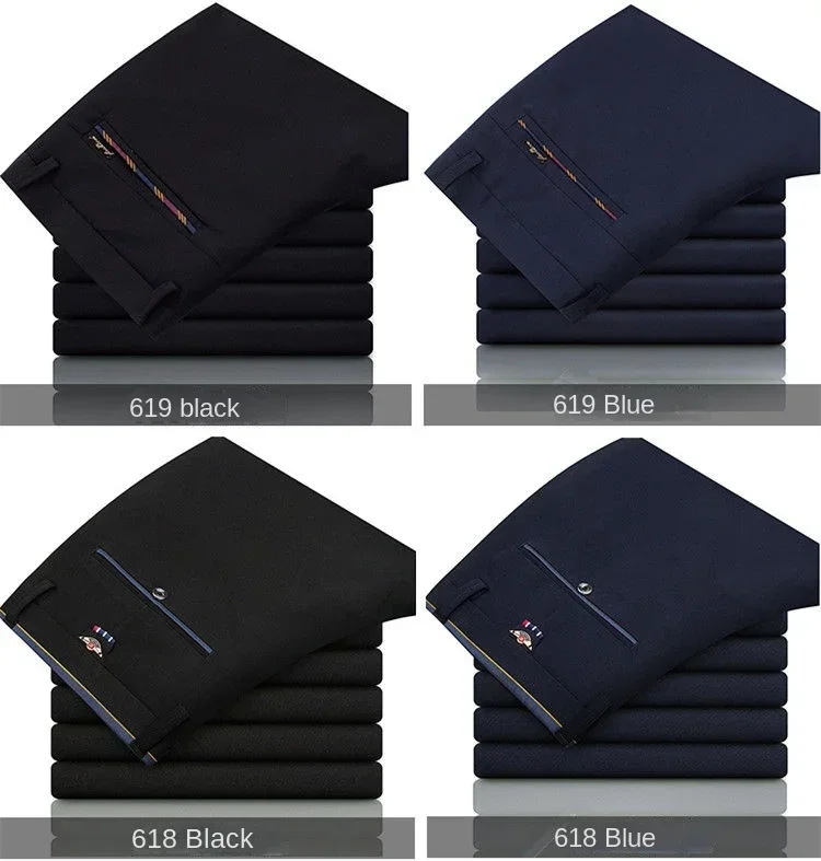 High Elastic Skinny Suit Pants for Men Business Office Trousers Korean Style Black Blue Casual Pants Men's Slim Fit Dress Pants