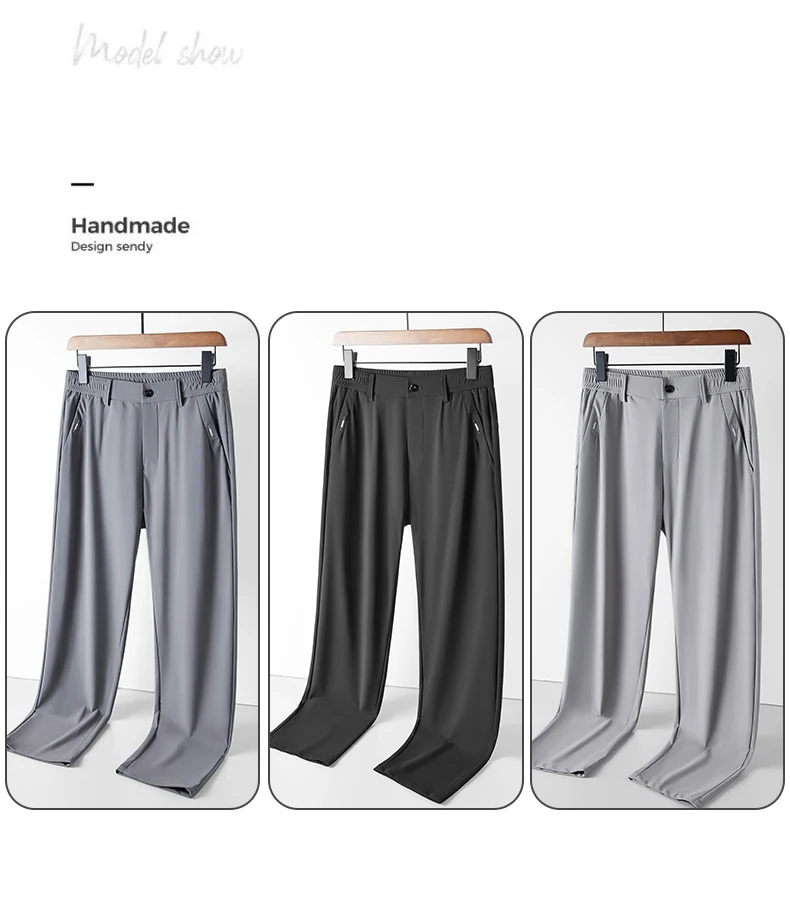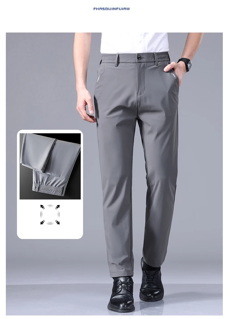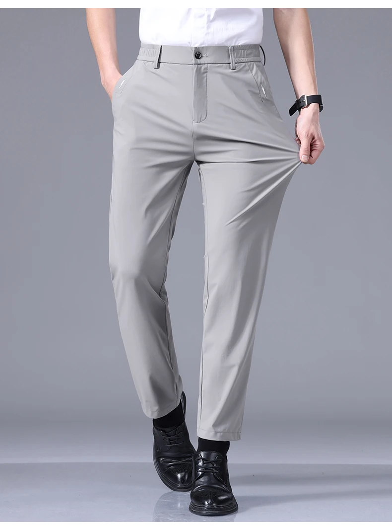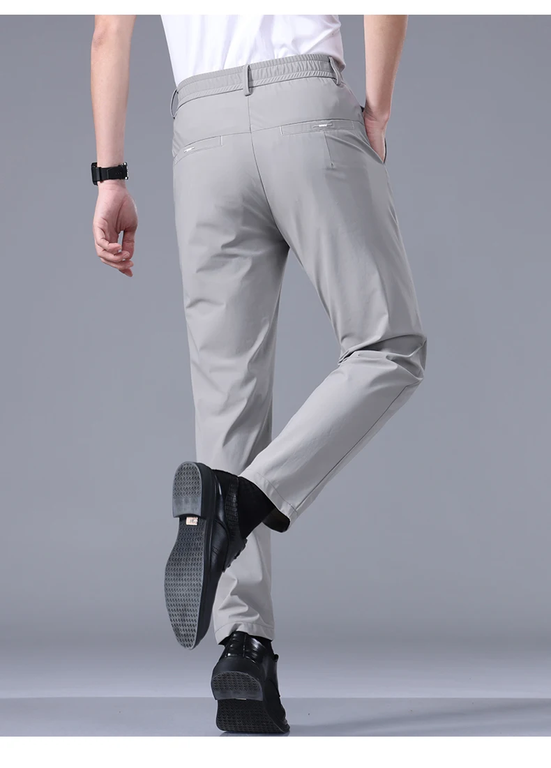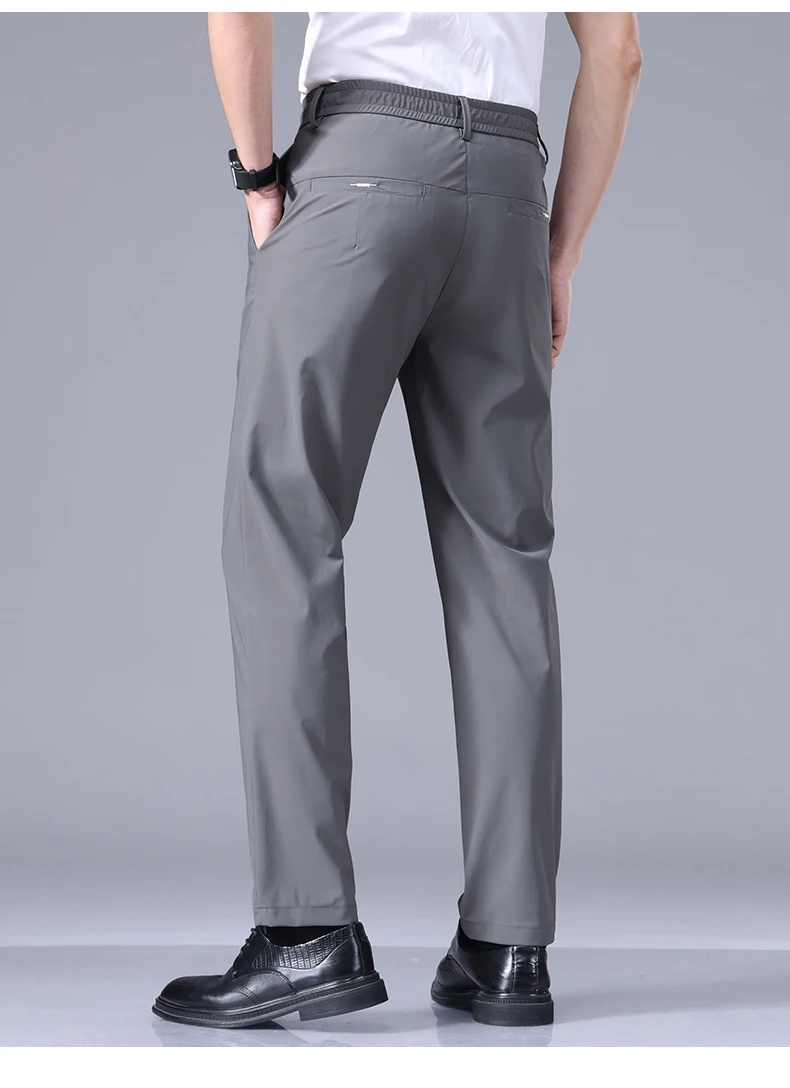 High Elastic Ultra-thin Casual Pants Men's Business Straight Slim Trousers Breathable Classic Black Gray Male Brand Pant