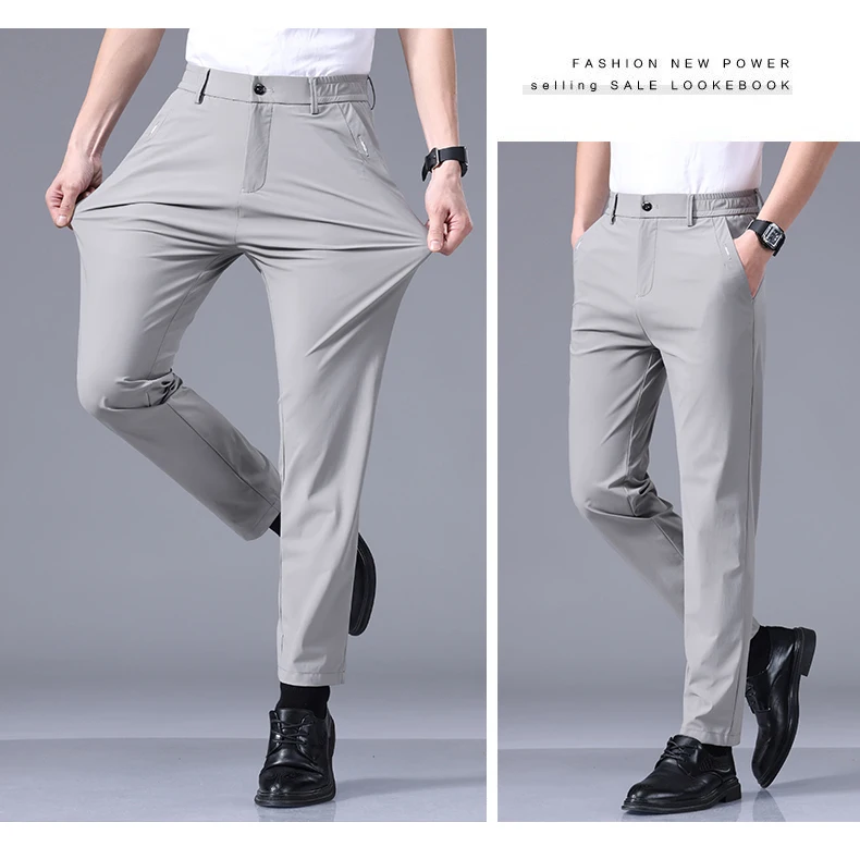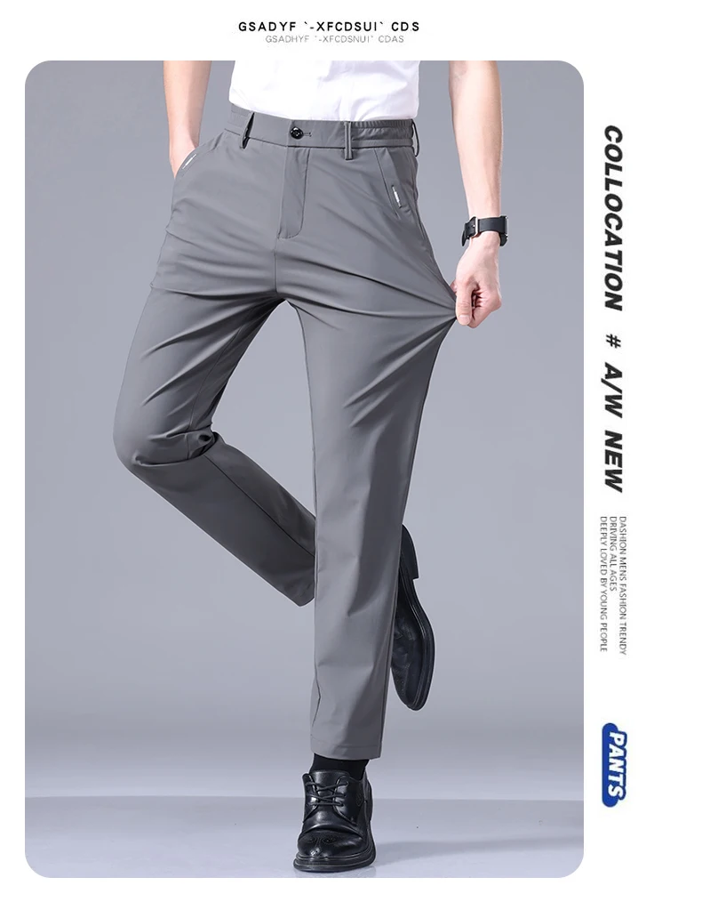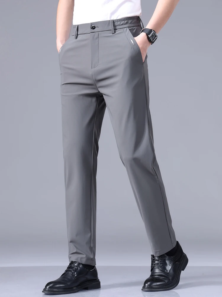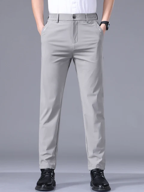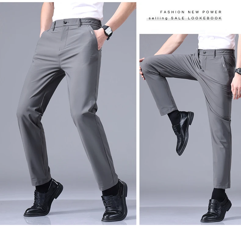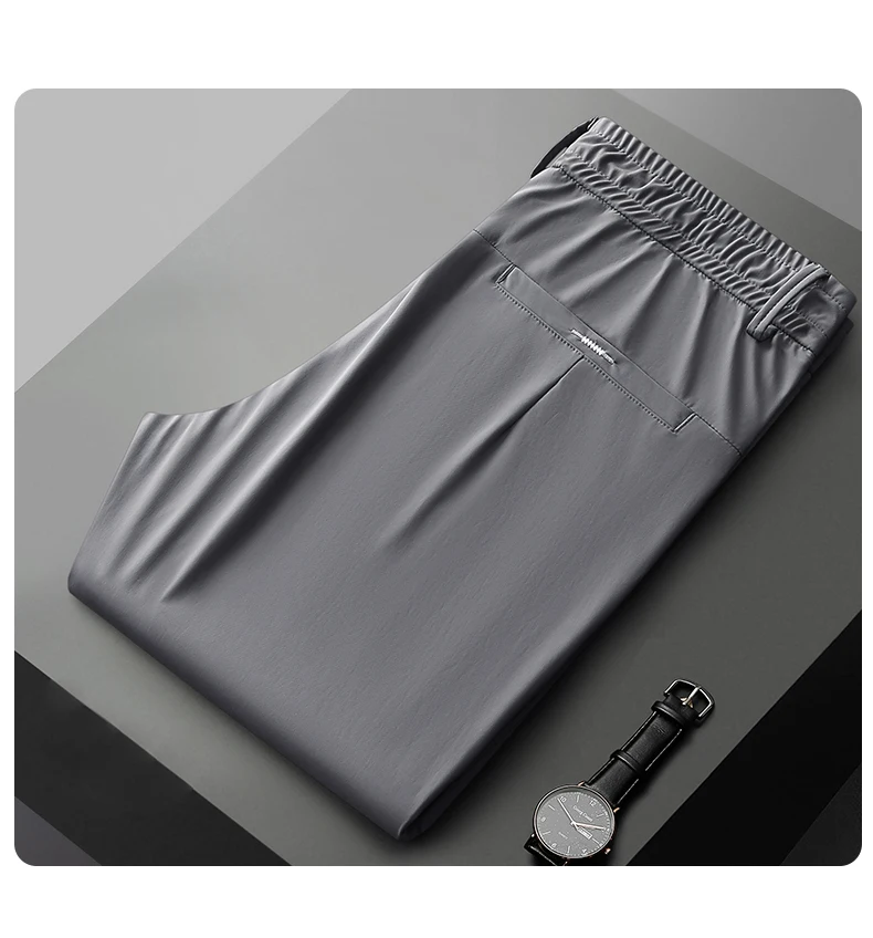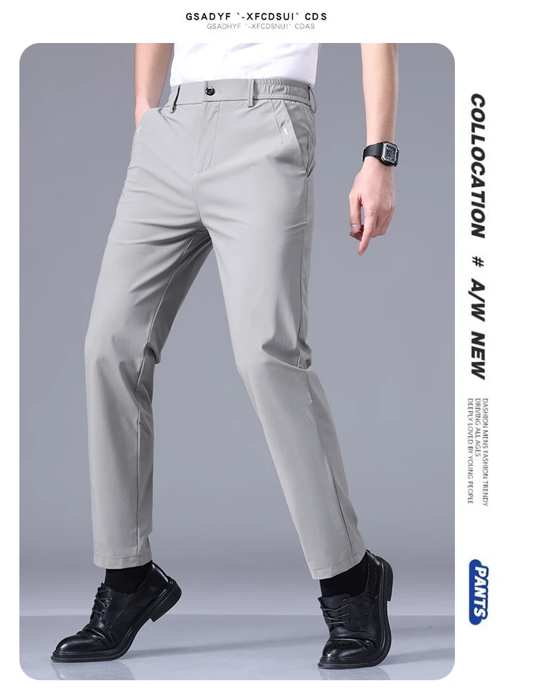 High Elastic Ultra-thin Casual Pants Men's Business Straight Slim Trousers Breathable Classic Black Gray Male Brand Pant