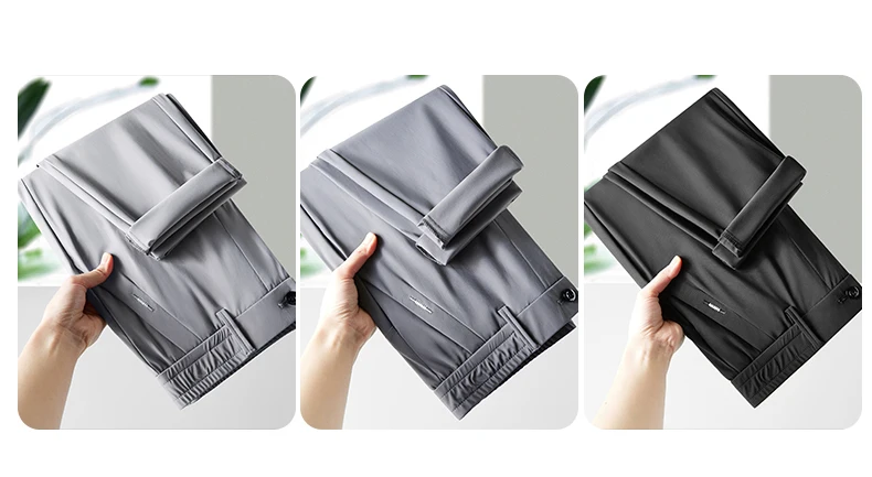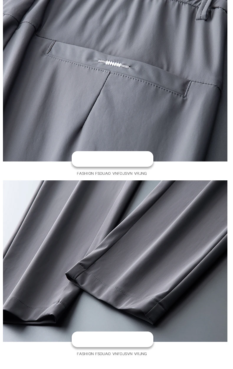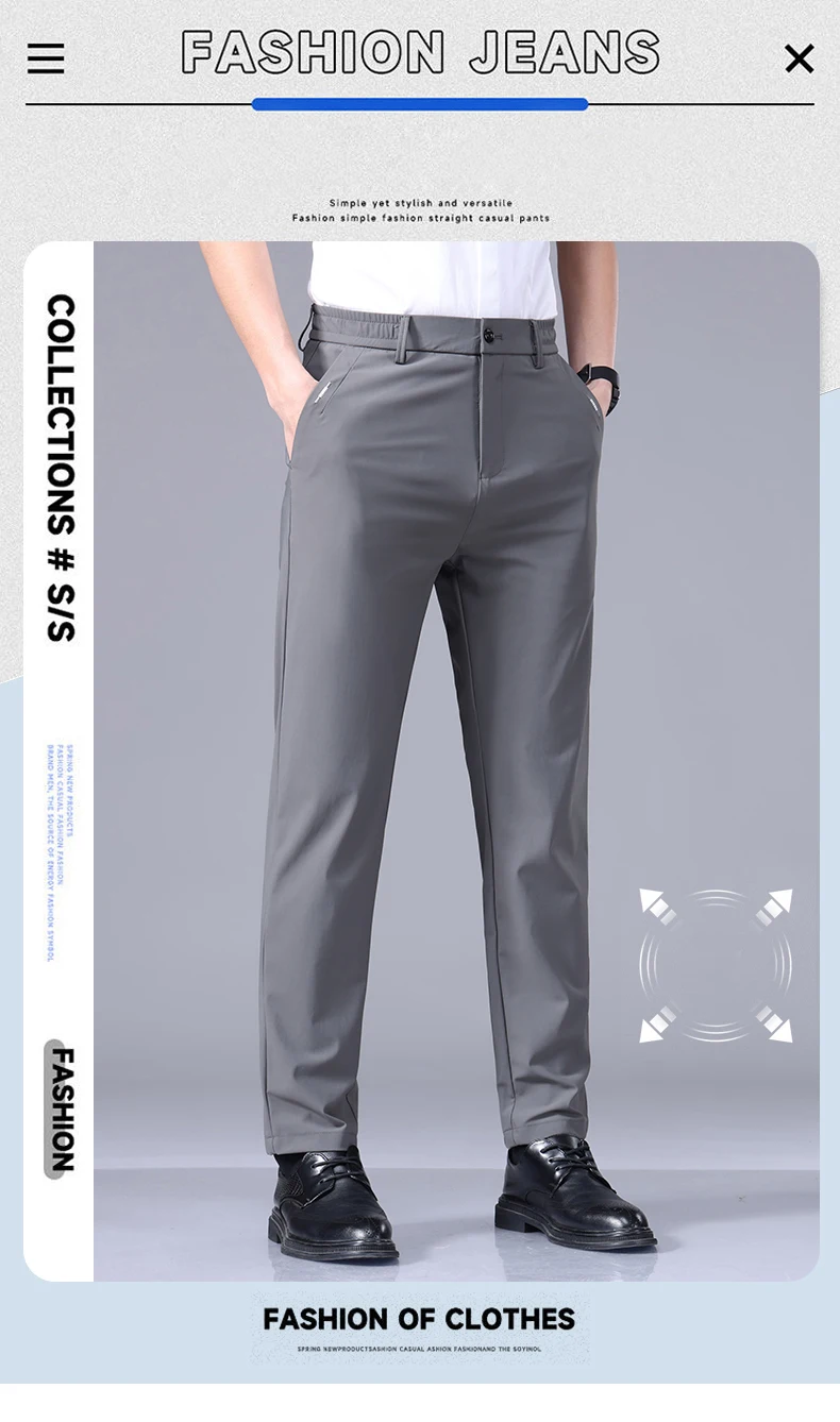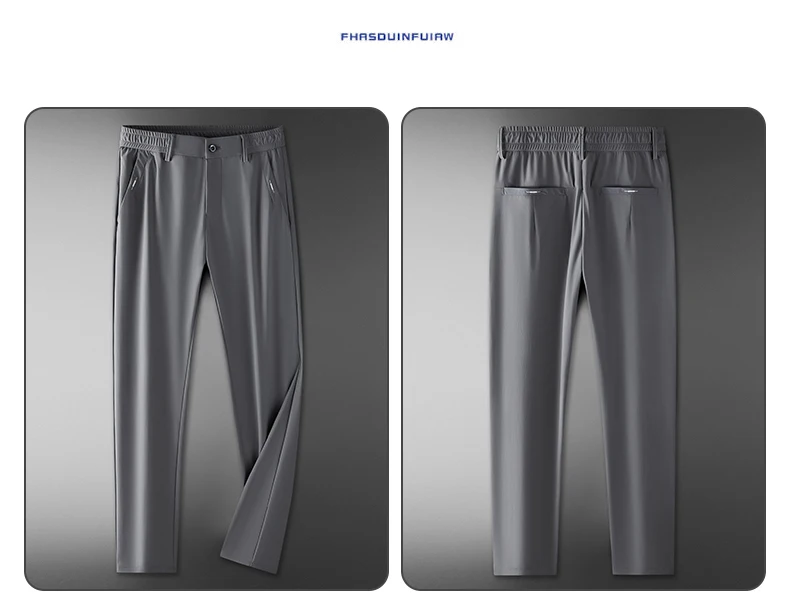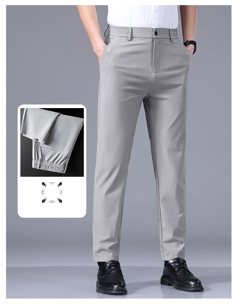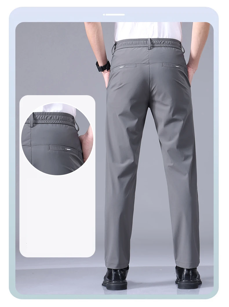 High Elastic Ultra-thin Casual Pants Men's Business Straight Slim Trousers Breathable Classic Black Gray Male Brand Pant