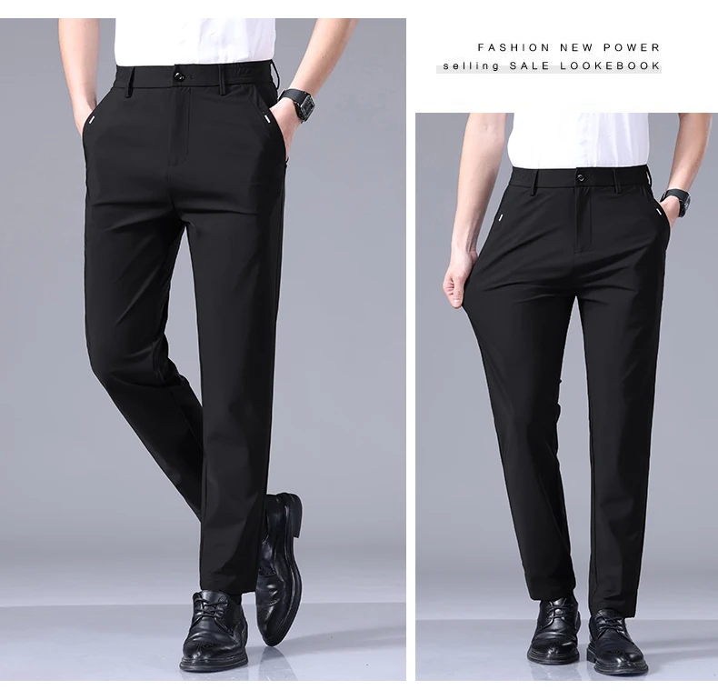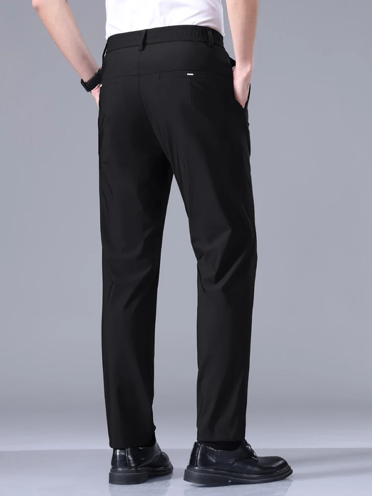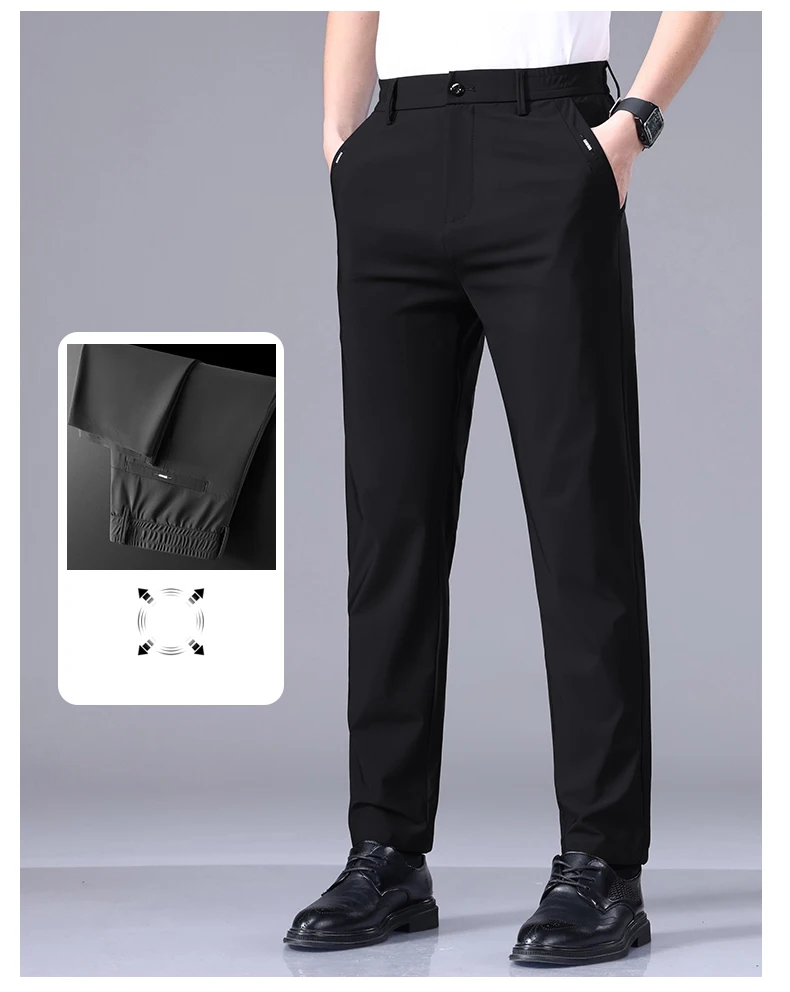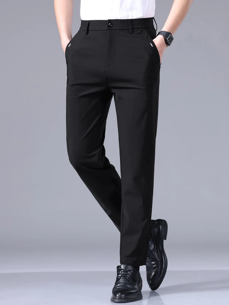High Elastic Ultra-thin Casual Pants Men’s Business Straight Slim Trousers Breathable Classic Black