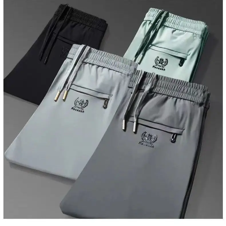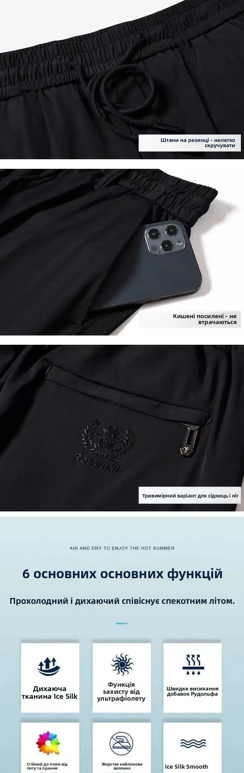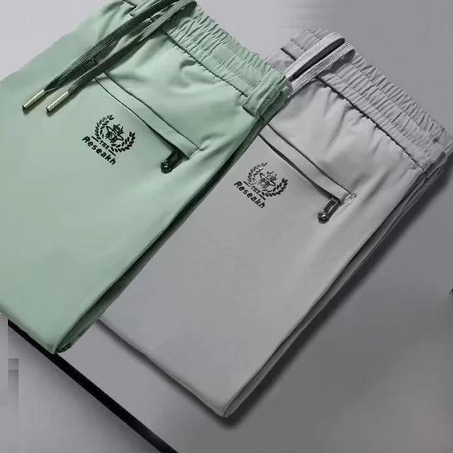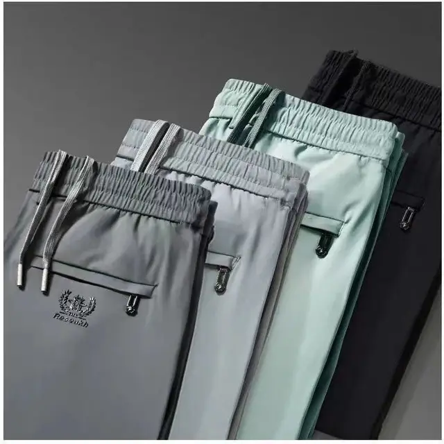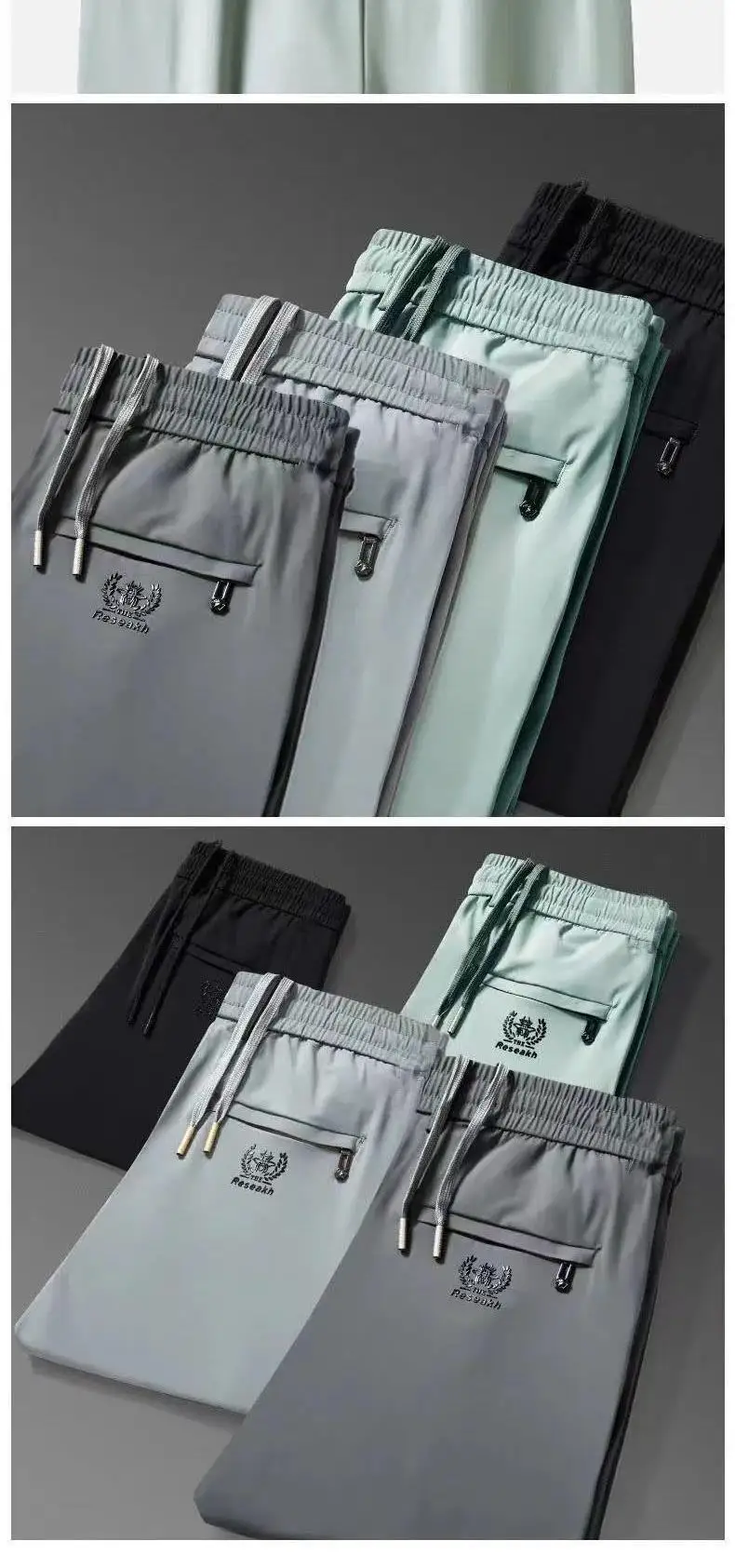 High Elastici Silk Men’s Casual Pants Thin Ice Silk Qui Dry Nine Points Summer Faionable Ci Sle