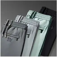 High Elastici Silk Men's Casual Pants Thin Ice Silk Qui Dry Nine Points Summer Faionable Ci Sle Straight Leg Trousers