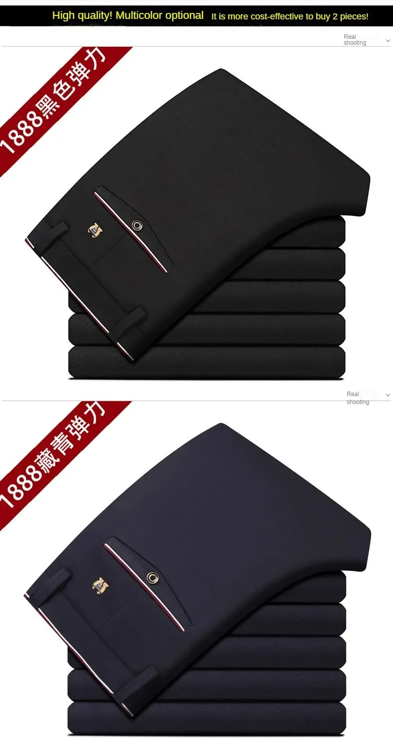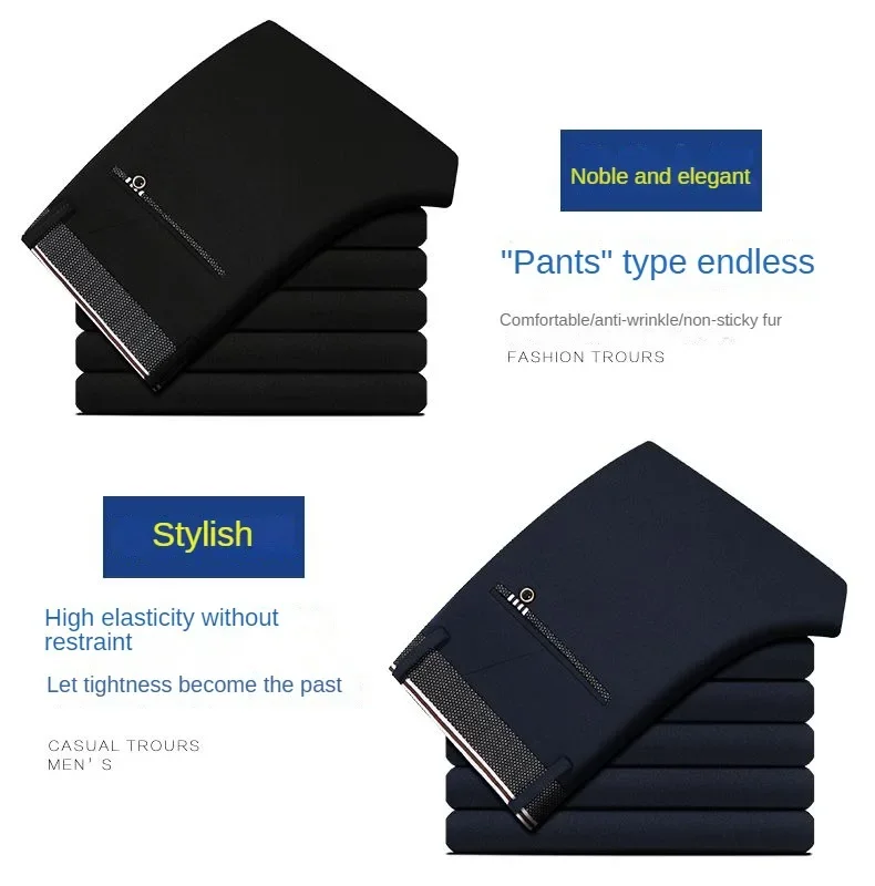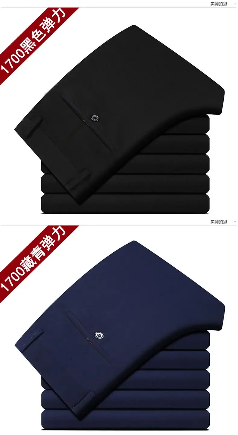 Mens Suit Pants Trousers Business Casual Pants 2025 Spring Autumn Dress Straight Pants Elastic Black Grey Loose Formal Pants