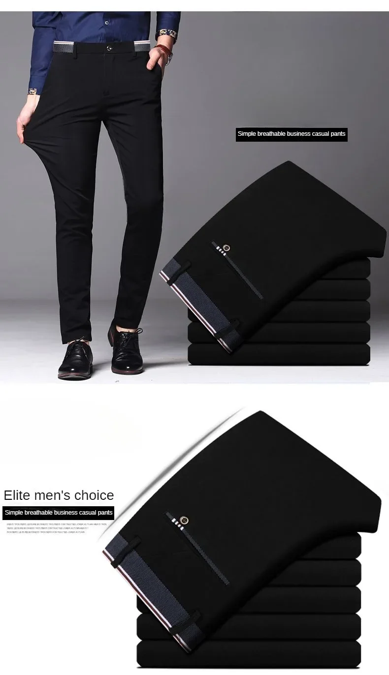 2024 New Men's Dress Pants Black Suit Pants Straight Slim Stretch Business Trousers Korean Style