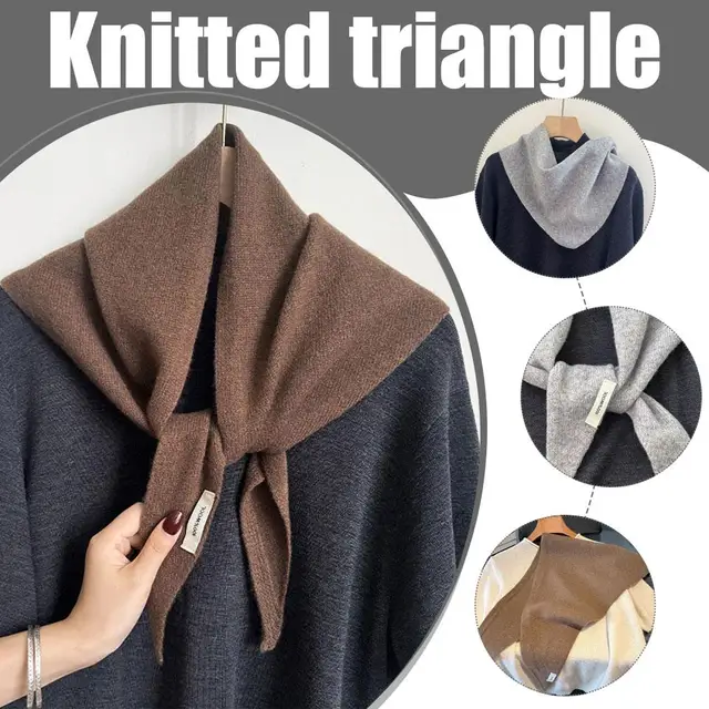 High-end Casual Warm Fashion Winter Multifunction Versatile Shawl 100% Pure Sheep Wool Knitted Triangle