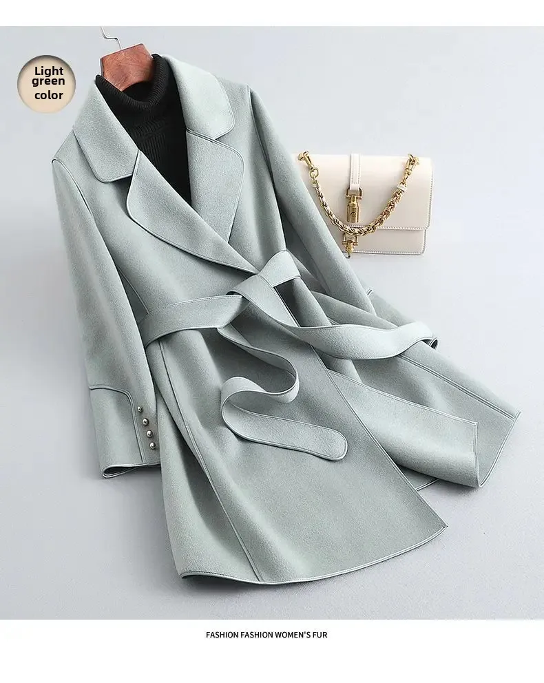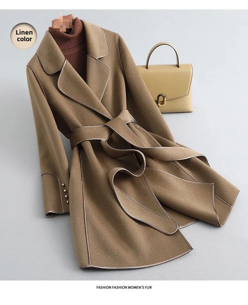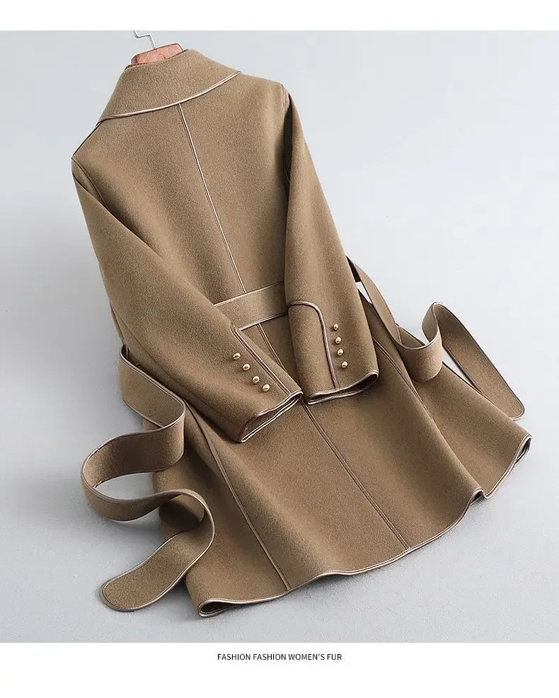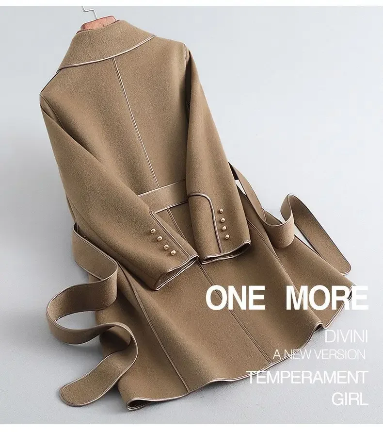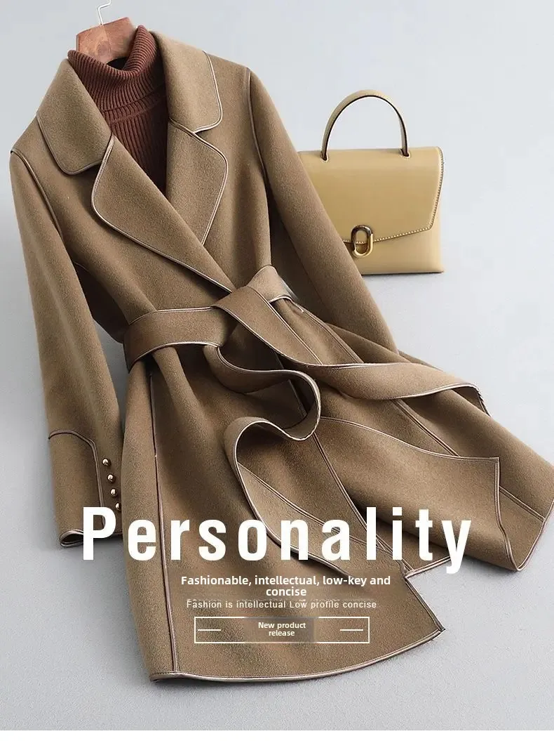 High-End Double-Sided Woolen Coat Women’s Fashionable Autumn Winter New Style Korean Version Medium-Length