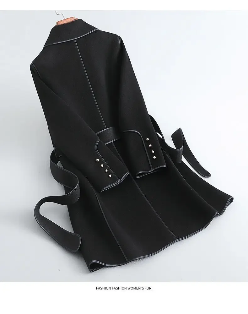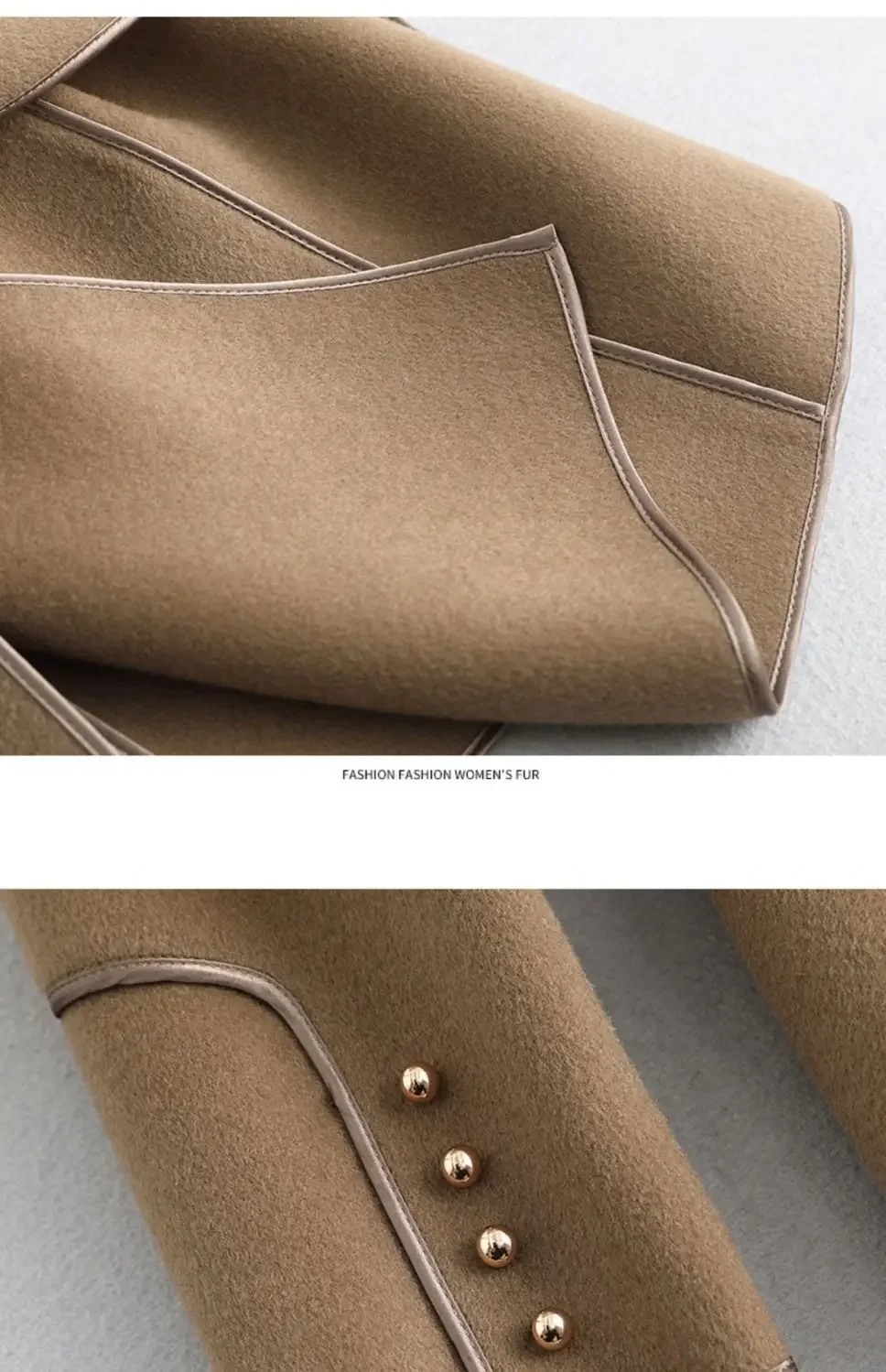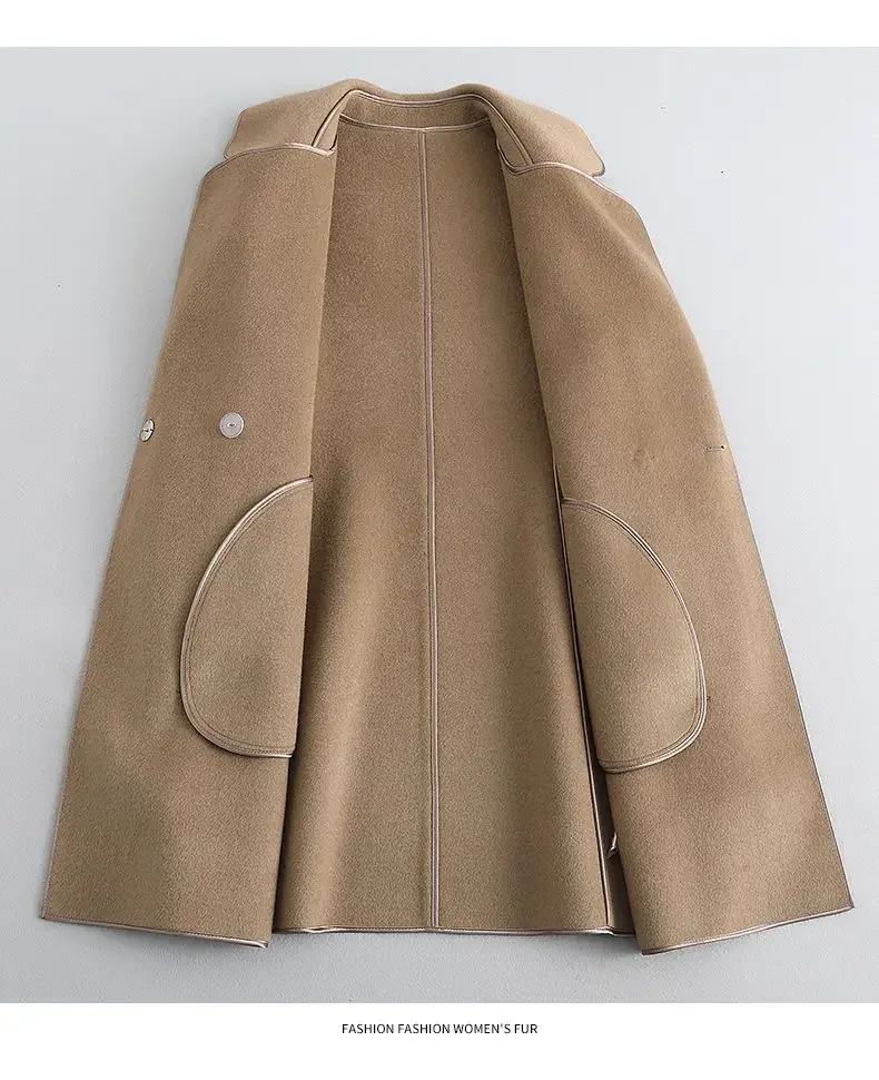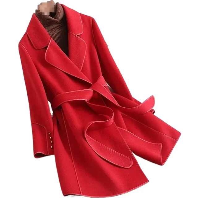 High-End Double-Sided Woolen Coat Women’s Fashionable Autumn Winter New Style Korean Version Medium-Length