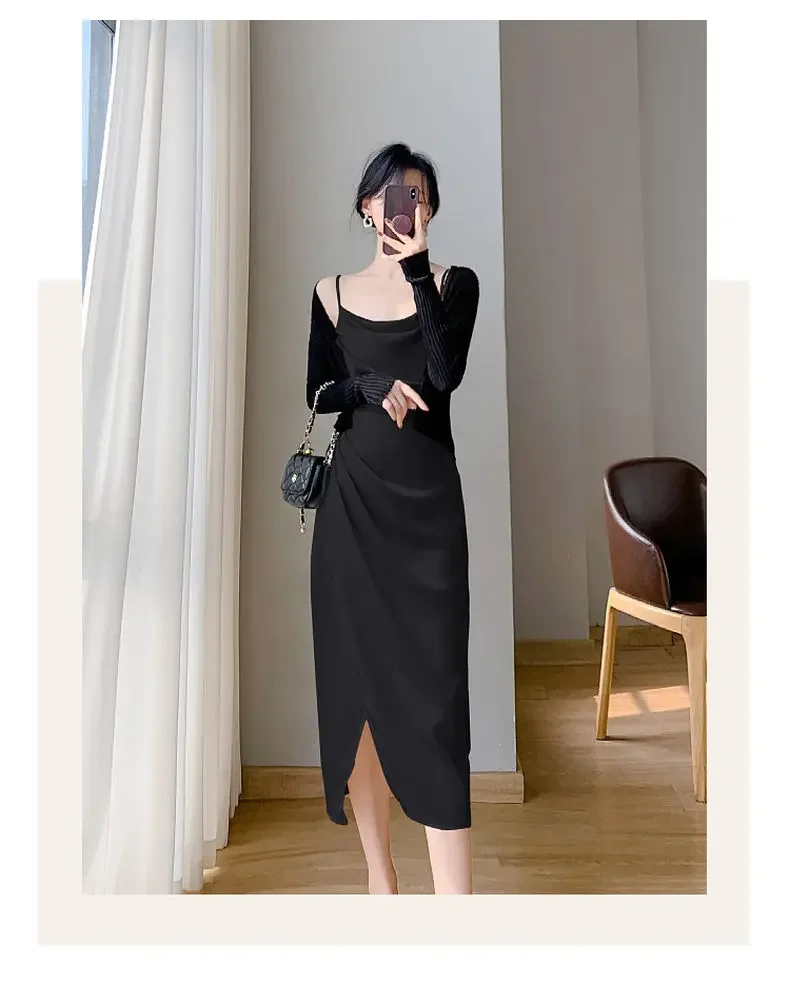 • Mid-Length Split :The mid-length split adds a touch of sophistication and style to the dress. It’s a versatile piece that can be dressed up or down for various occasions.