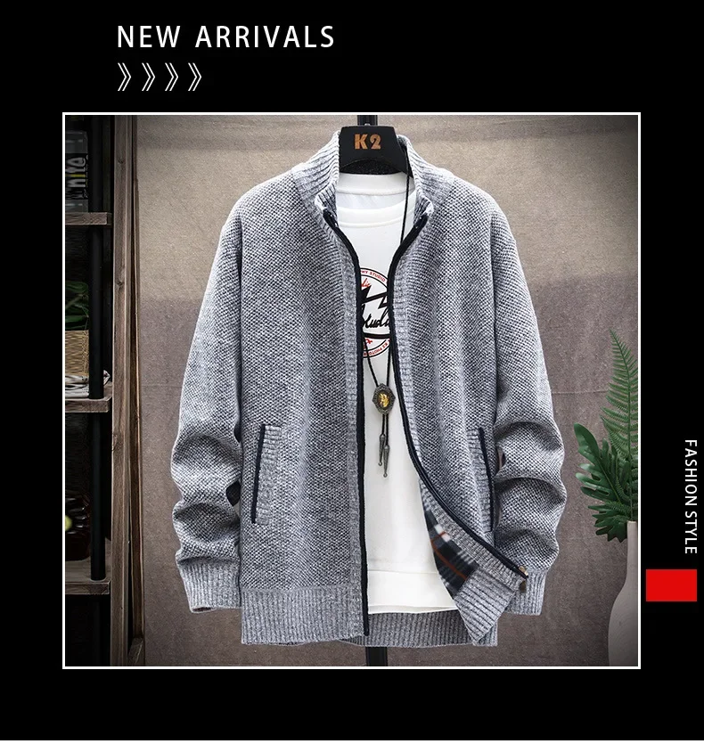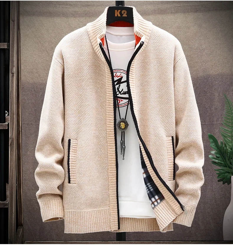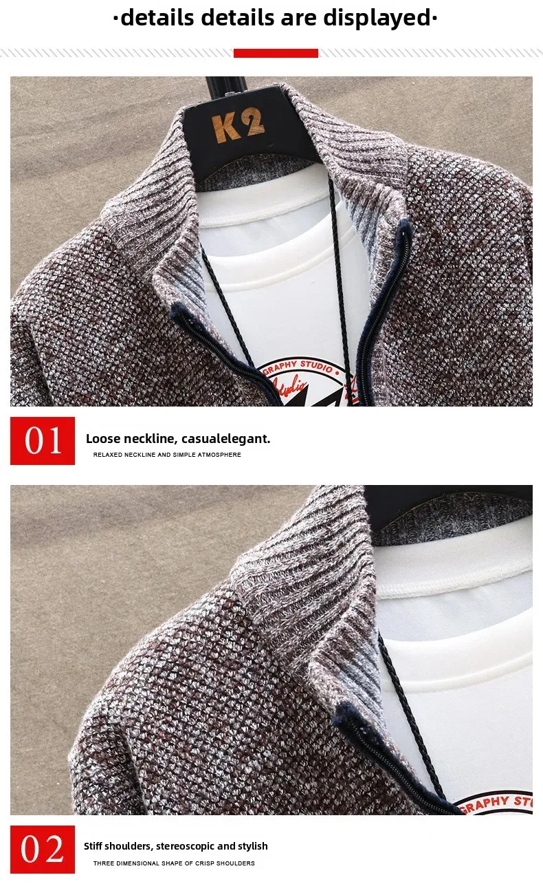 High-End Men’s Knitted Cardigan Jacket Outerwear Autumn Winter Tagless Casual Style Light Weight