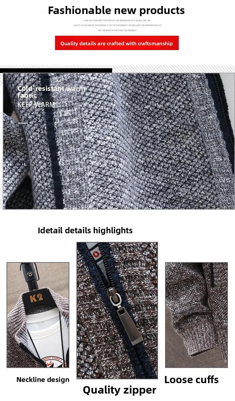 High-End Men's Knitted Cardigan Jacket Outerwear Autumn Winter Tagless Casual Style Light Weight from Mainland China