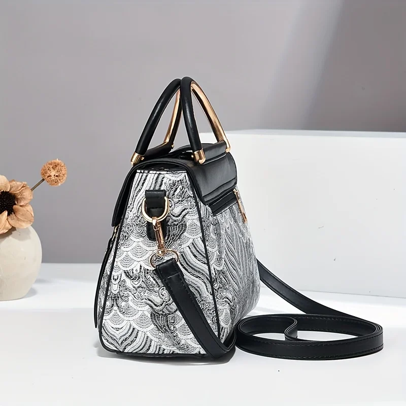 New Japanese-Style Embroidered Chain Pony Women's Shoulder Bag, Large Capacity Shopping Bag, Lightweight and Foldable, Suitable for Commuting, Travel, Leisure, Holidays, and Parties