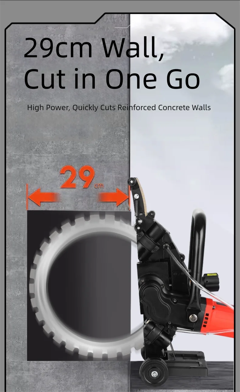 Equipped with a robust 6000W power source, this brushless wall saw effortlessly cuts through concrete with precision.