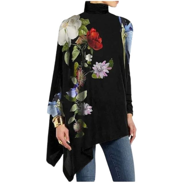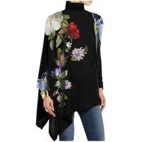 Be the first to review “High Neck Rose Printed Long Sleeve Top Women’s Loose Black T-Shirt Autumn Spring Elegant Party”
