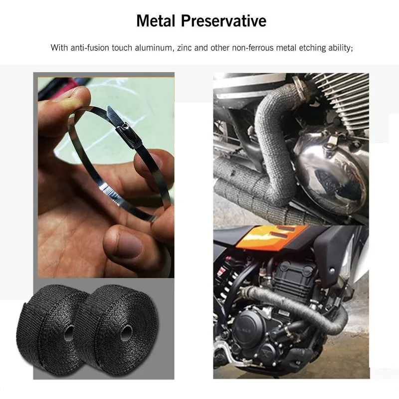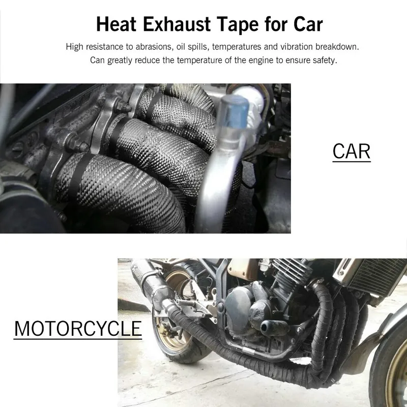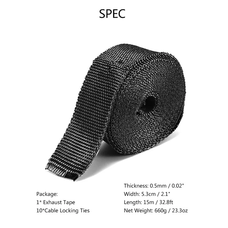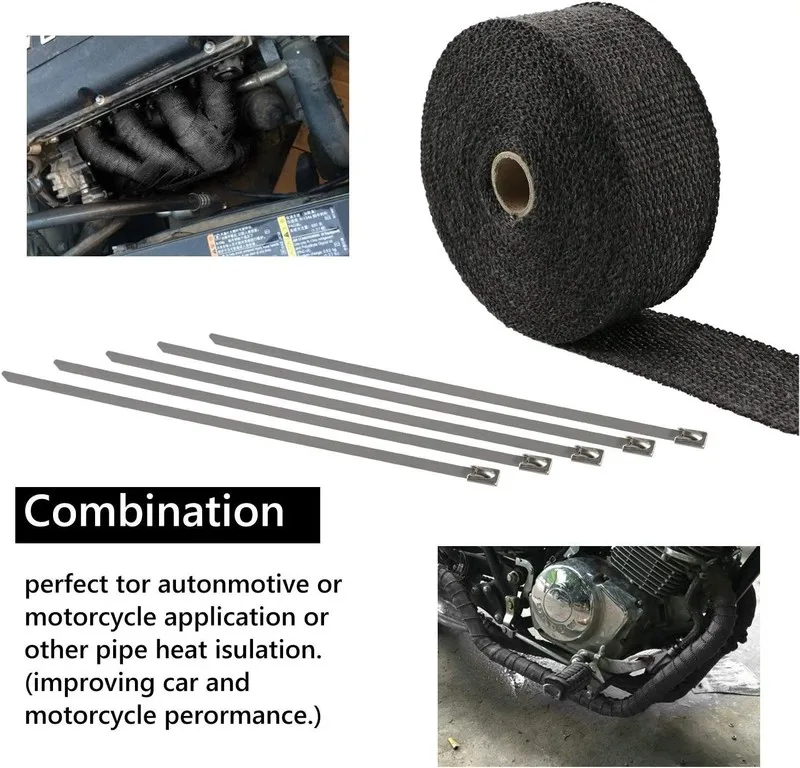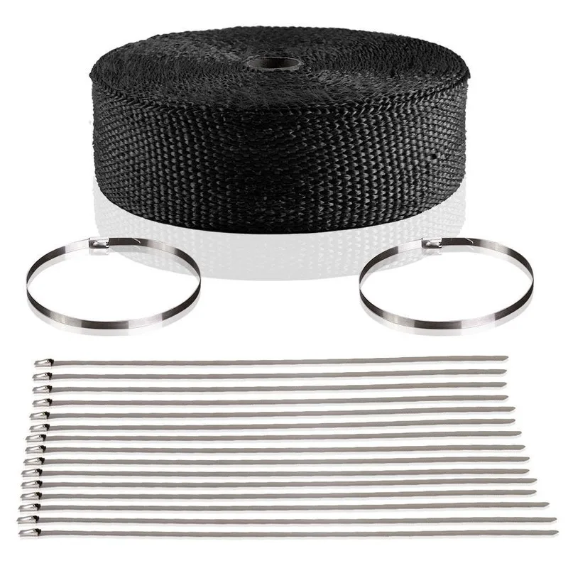 High Quality 15M Exhaust Heat Wrap Tape Titanium Fiberglass Thermal Shield with Stainless Ties for Motorcycle
