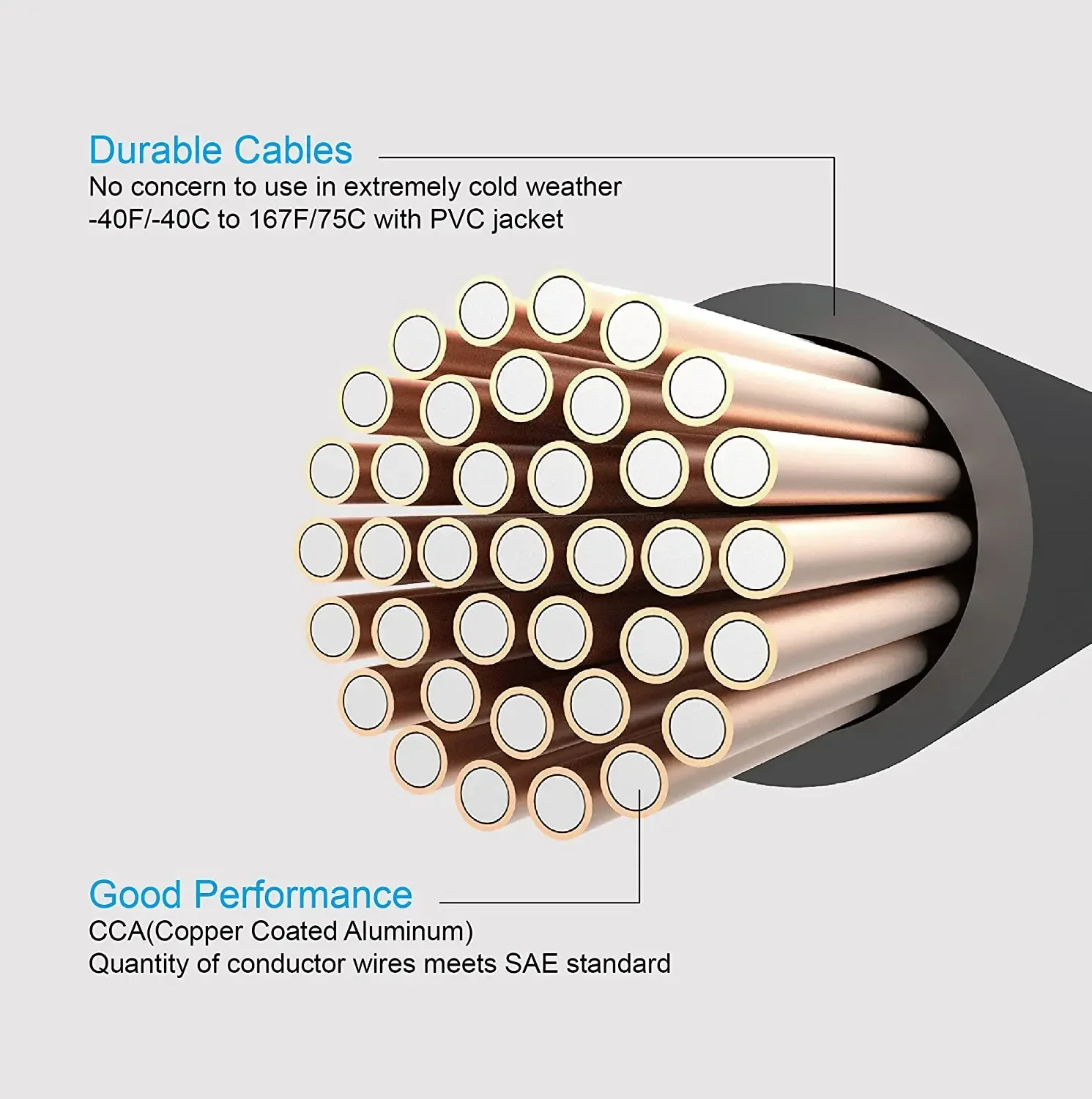 Our booster cables work good under extreme hot weathers like 167℉/75℃.