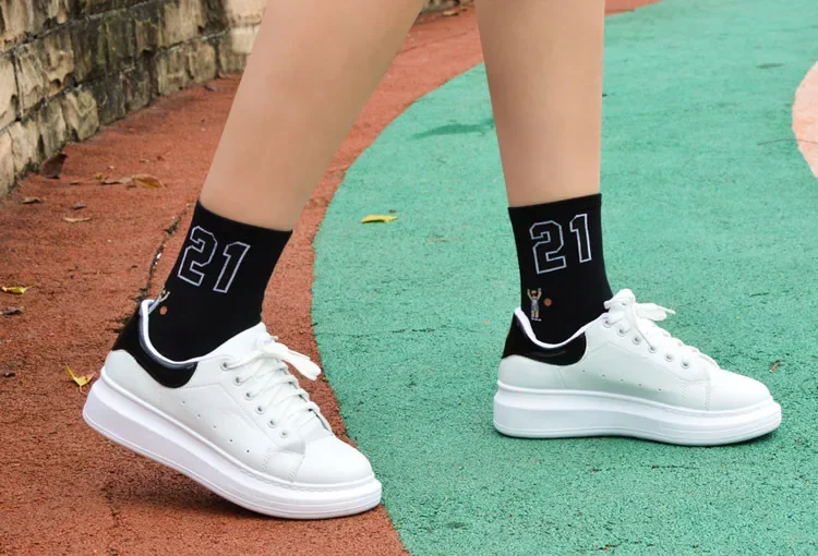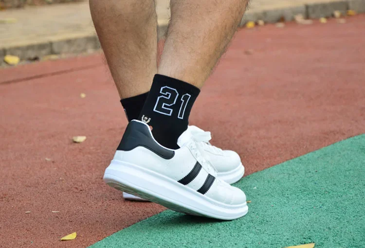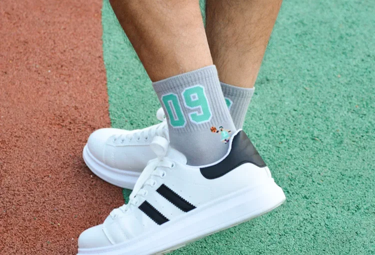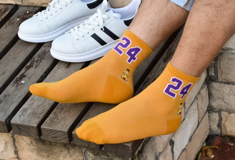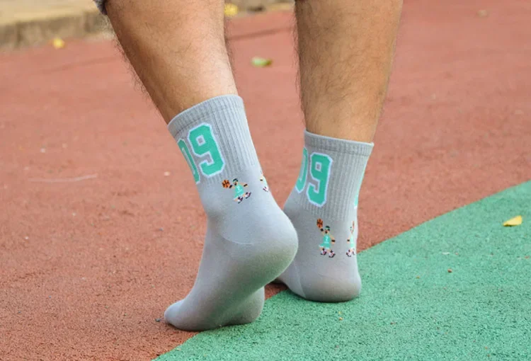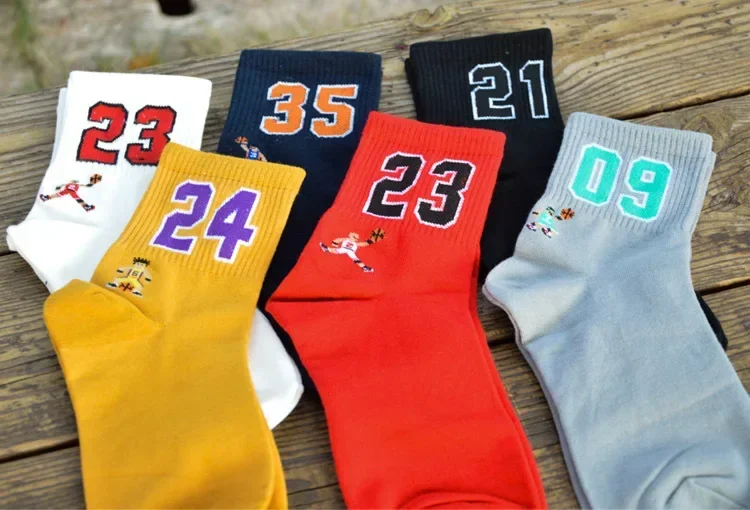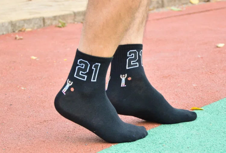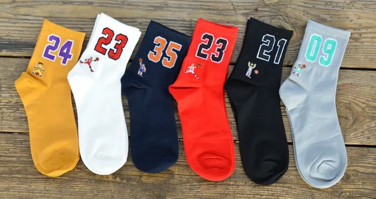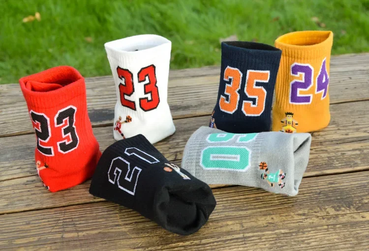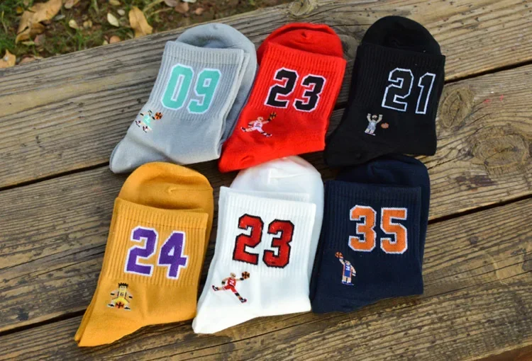 High Quality Fashion Men’s Breathable Basketball Socks Elite Thick Sports Socks Unisex Harajukumen’s happy Funny Embroider socks