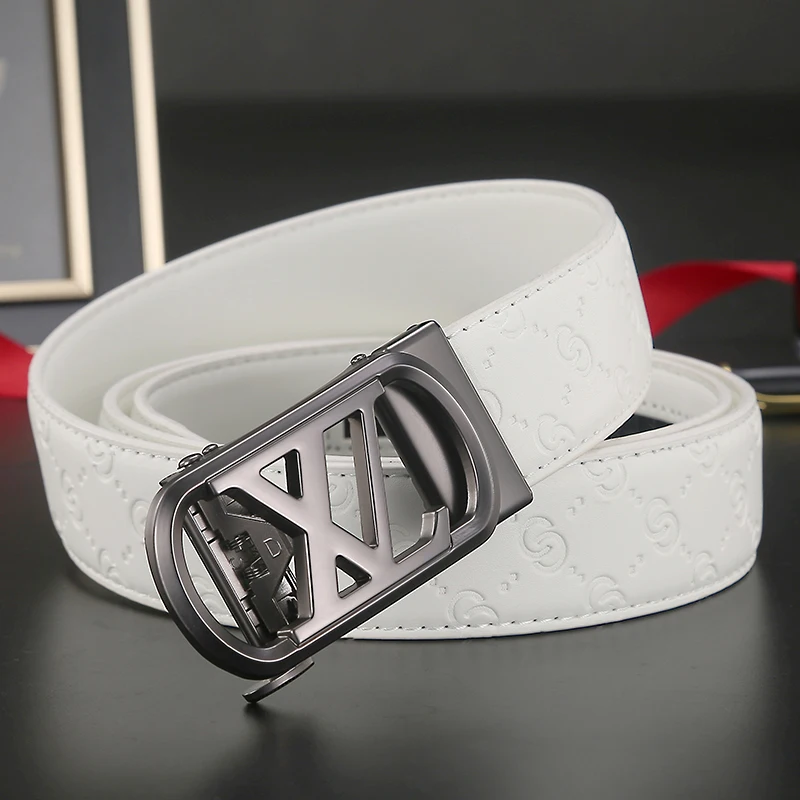 V letter buckle golden buckle belt men fashion Personality buckle luxury strap genuine leather white High Quality ceinture homme