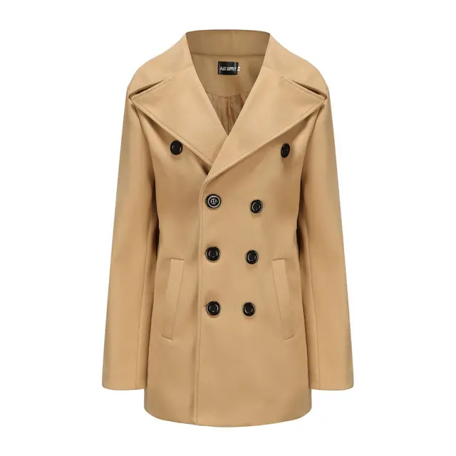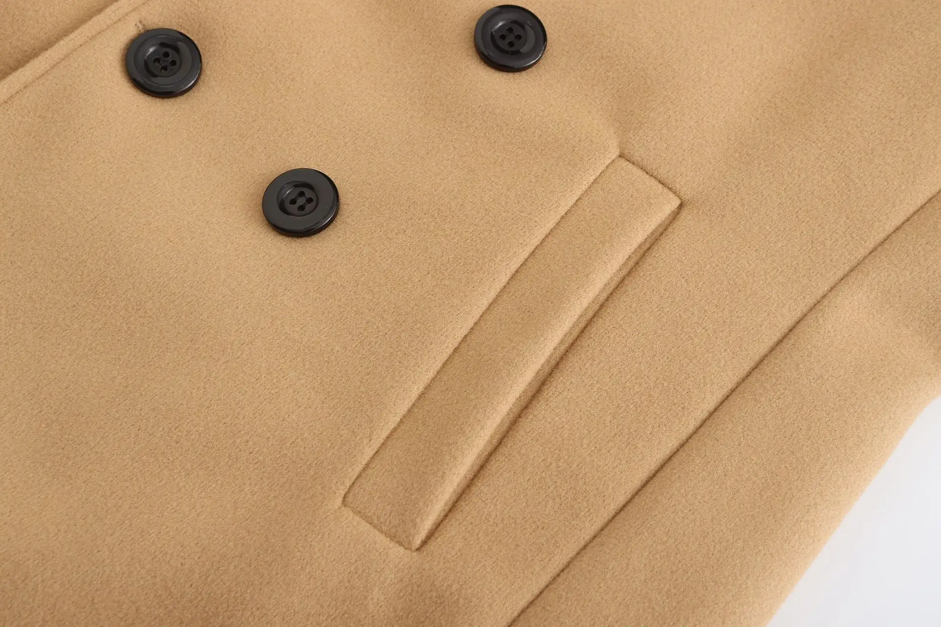 High-Quality Men’s Mid-Length Long-Sleeve Woolen Coat British Style Autumn Winter Outerwear Polyester
