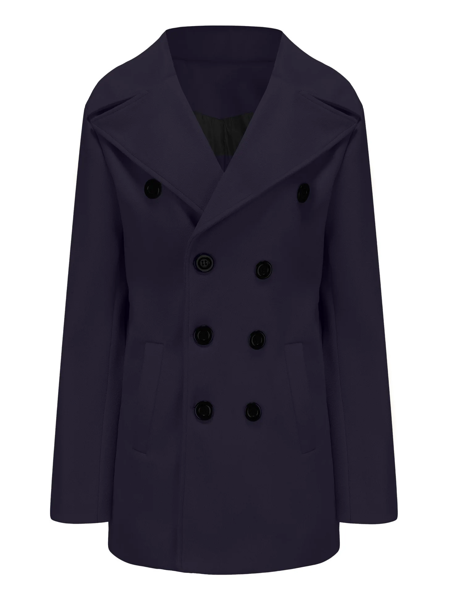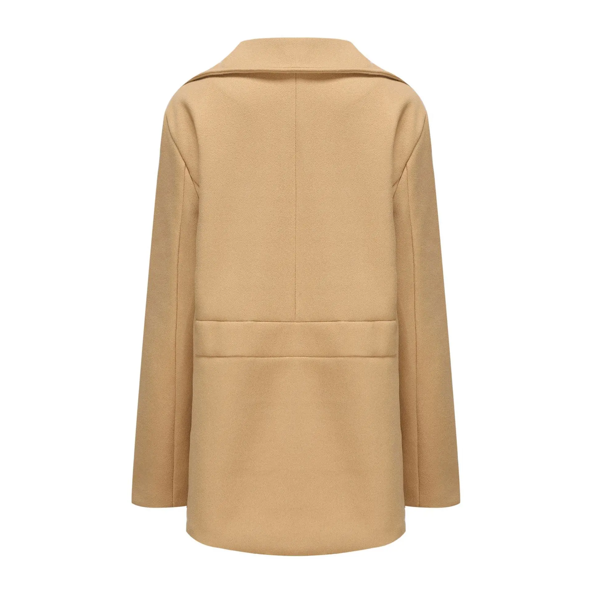 This coat serves as a stylish outer layer, suitable for various occasions, from casual outings to more formal events.