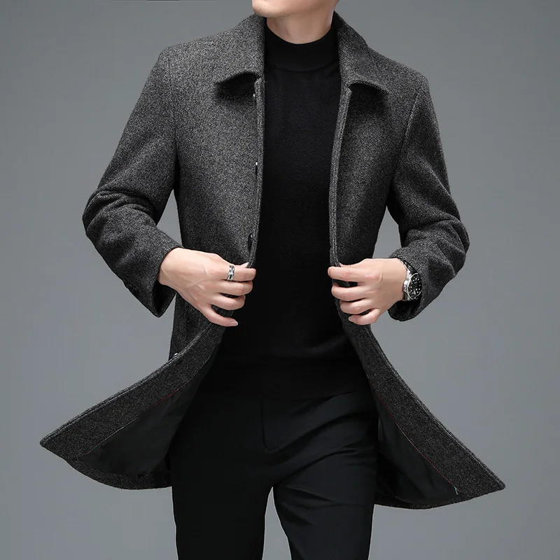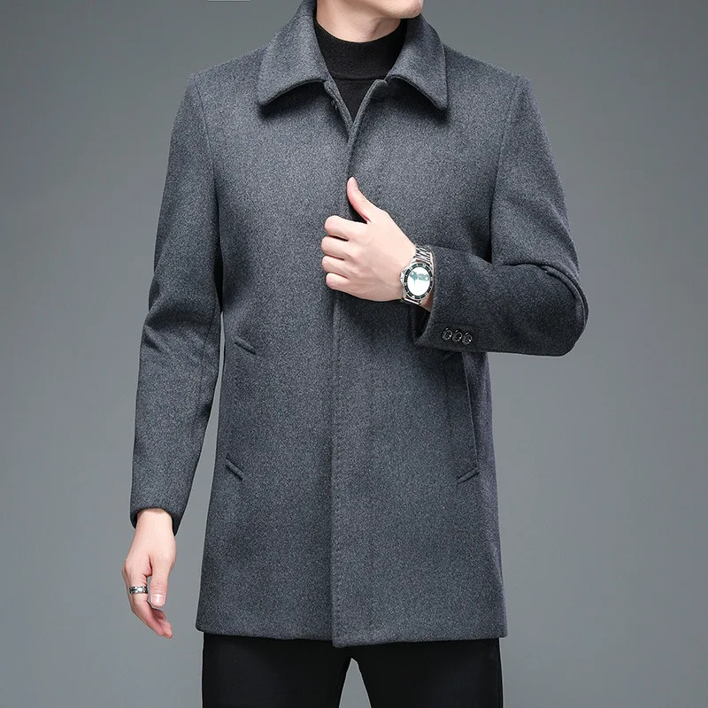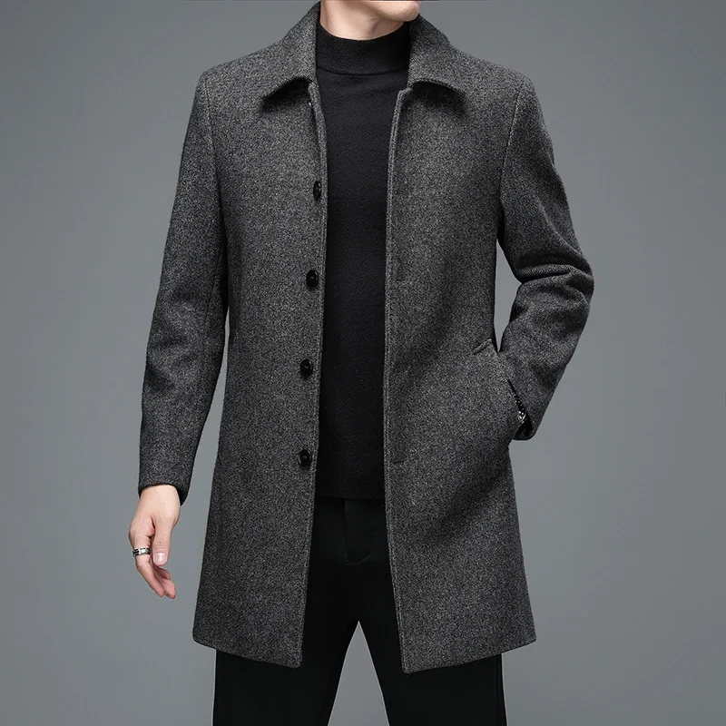 Men Formal Overcoat Wool Jacket Double Breasted Blazer Peaked Lapel Tuxedos Coat One Piece