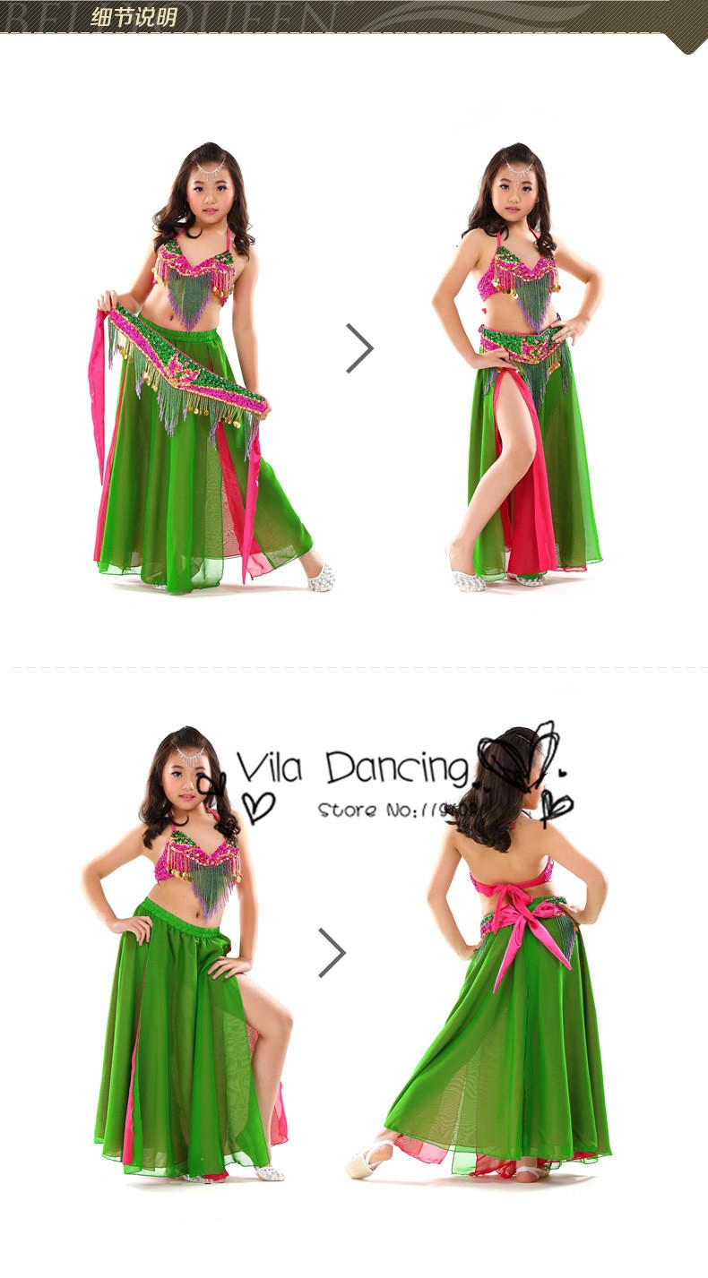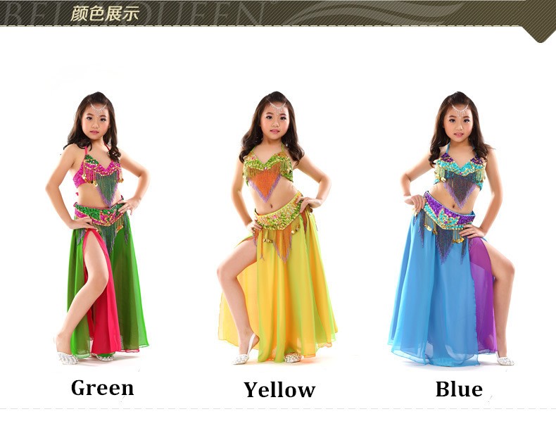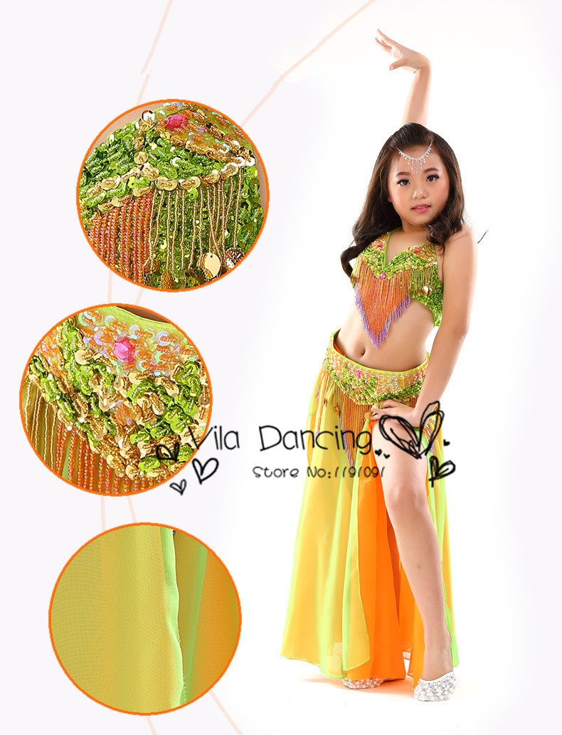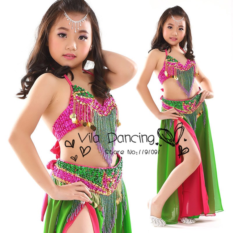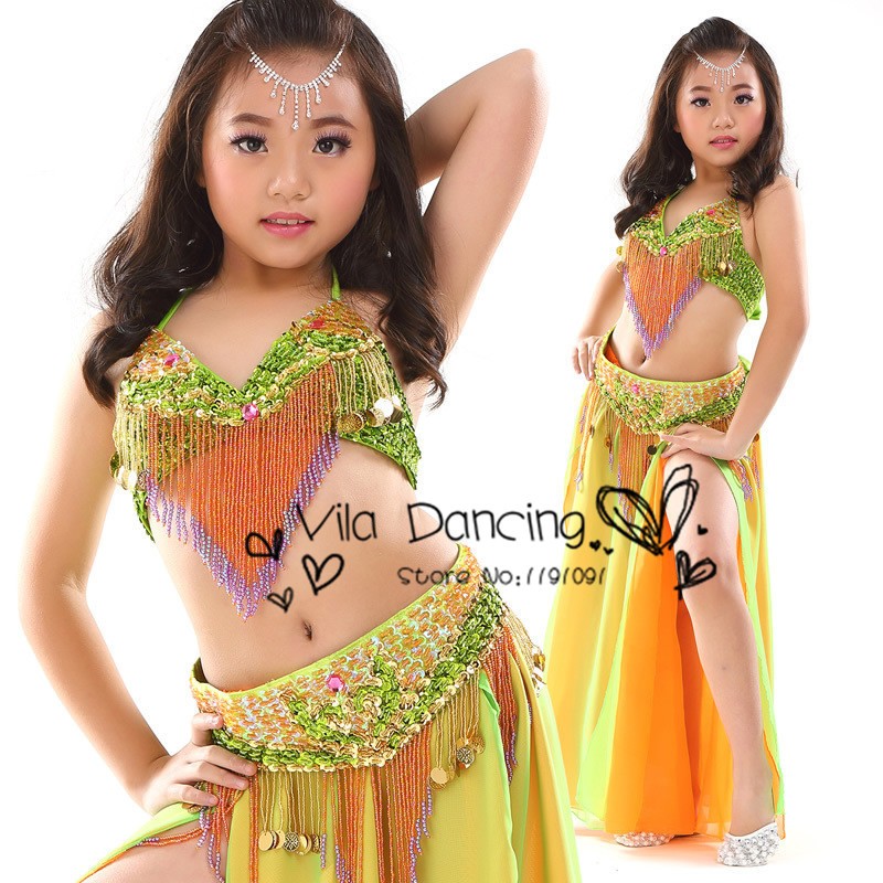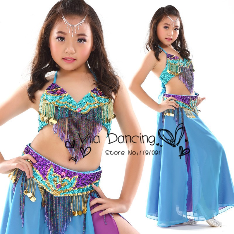 High Quality New Belly Dance Costume Clothes Wear Kids Dance Child Bellydance Children Indian Dance 2pcs-3pcs Bra&Belt&Skirt