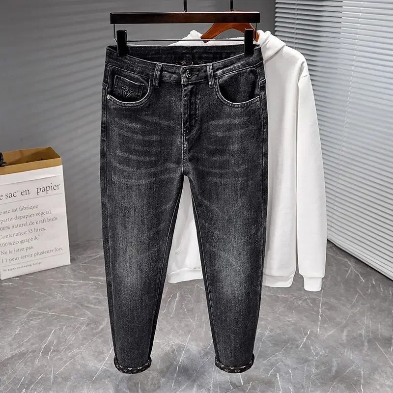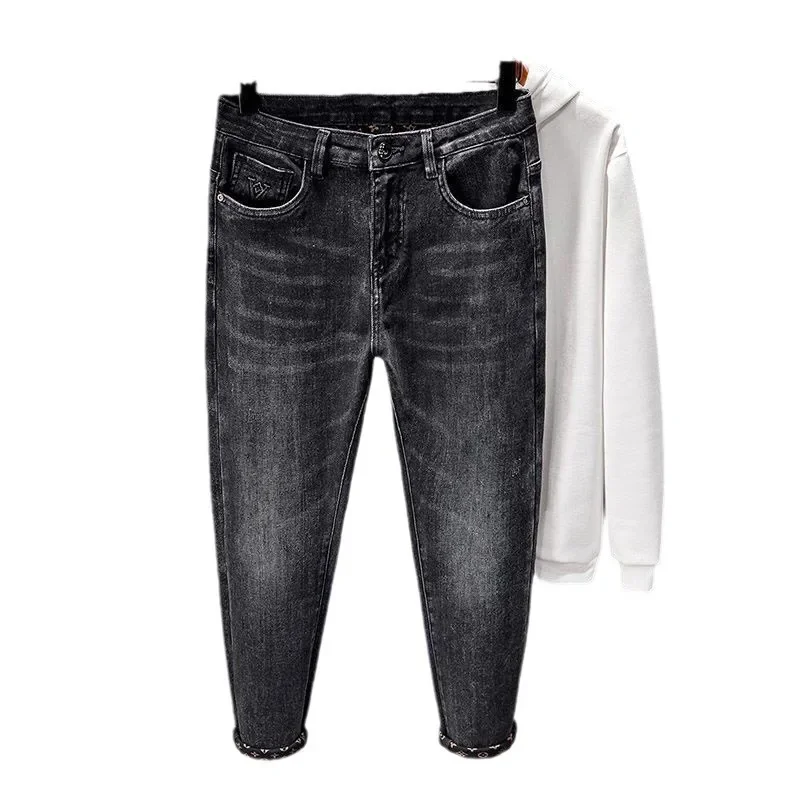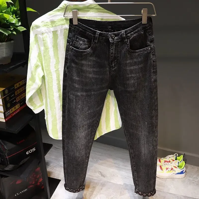 High Quality Nine-Tenths Men’s Jeans Spring Summer Trendy Elastic Loose Versatile Casual Pants