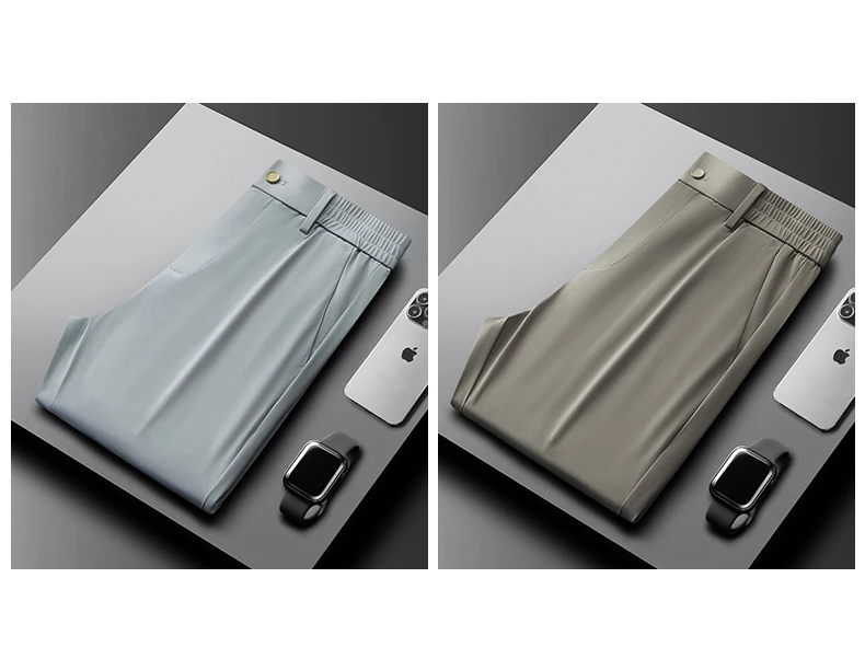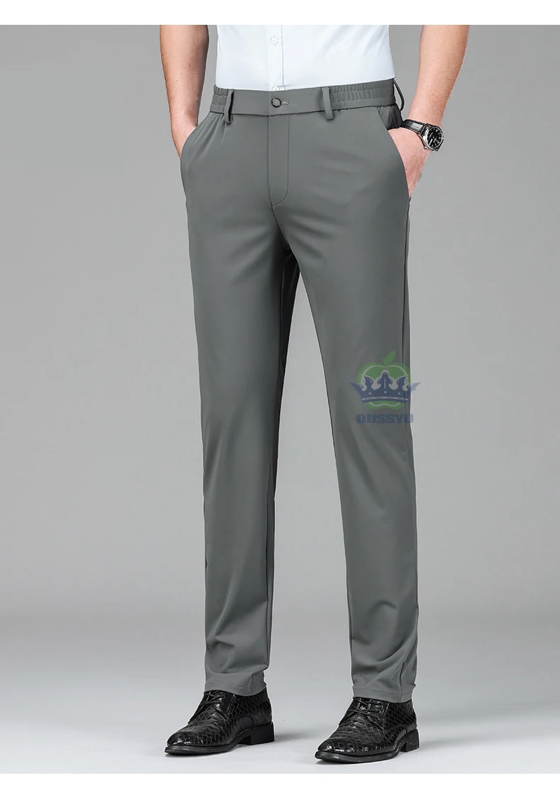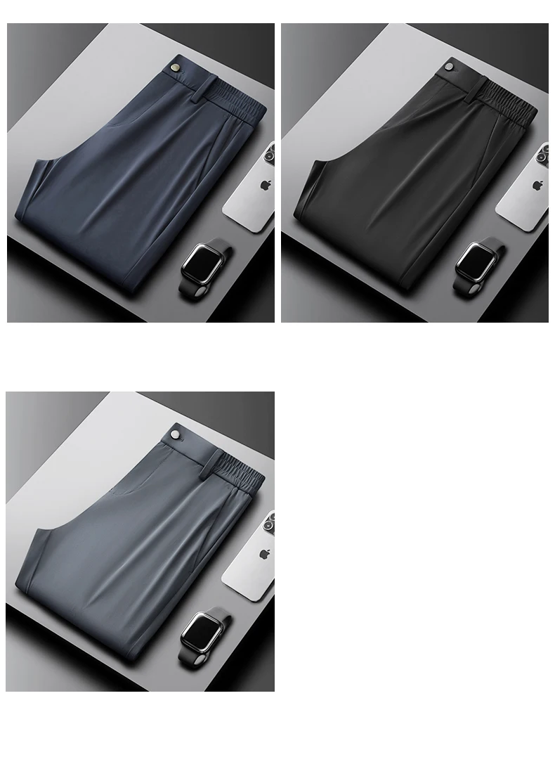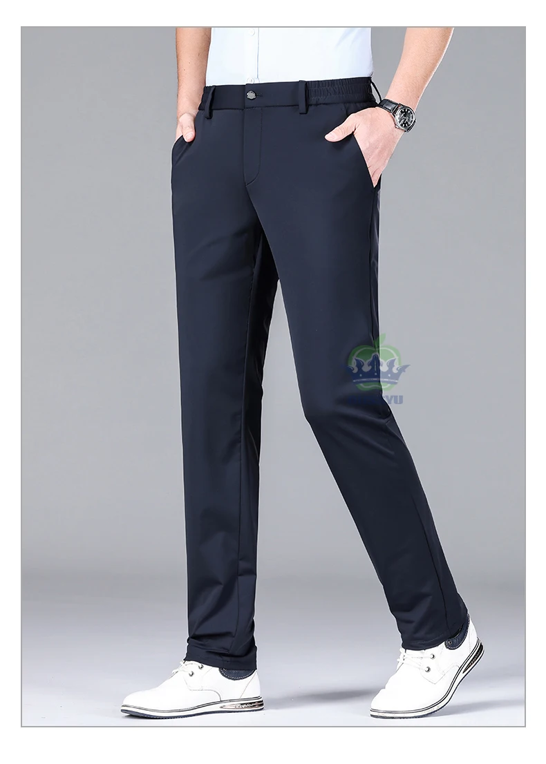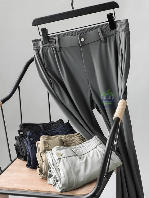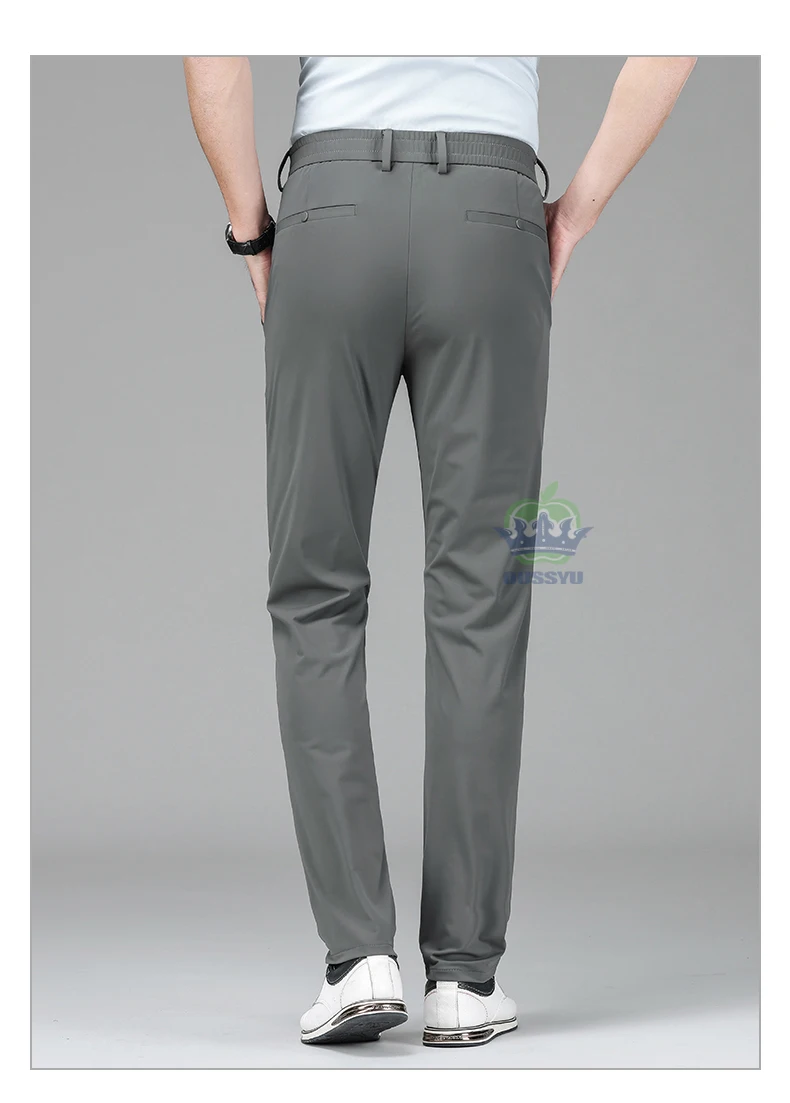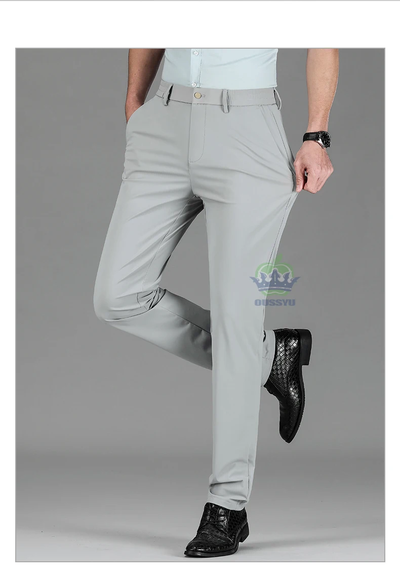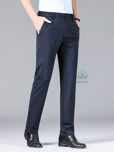 High Quality Summer Ultrathin Ice Silk Business Pants Men Elastic Waist Classic Work Casual Office Formal