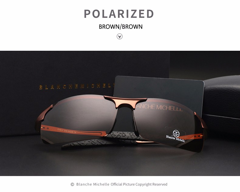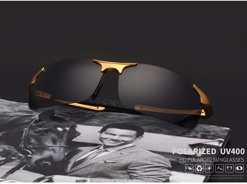 High Quality Ultra-Light Aluminum Magnesium Sport Sunglasses Polarized Men UV400 Rectangle Gold Outdoor