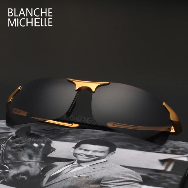 High Quality Ultra-Light Aluminum Magnesium Sport Sunglasses Polarized Men UV400 Rectangle Gold Outdoor