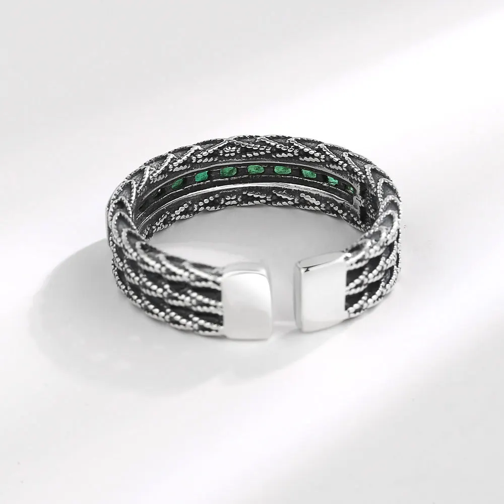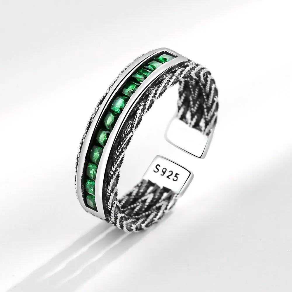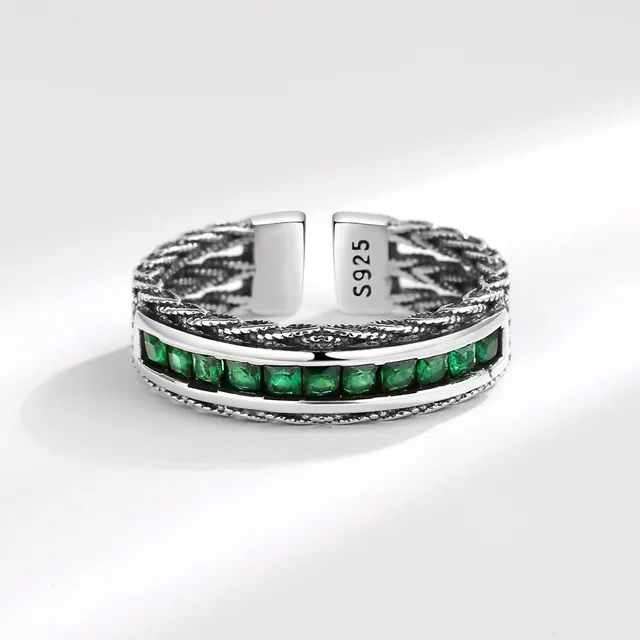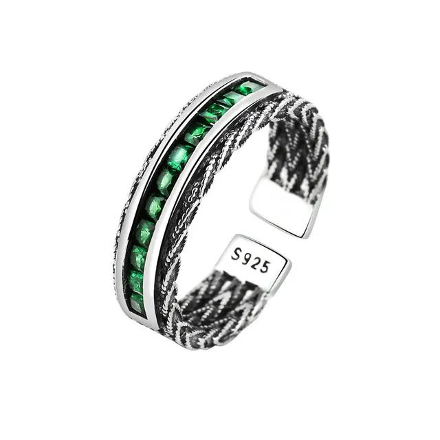 High Quality Vintage Green Crystal Thai Silver Ladies Engagement Ring Wholesale Jewelry For Women Cheap