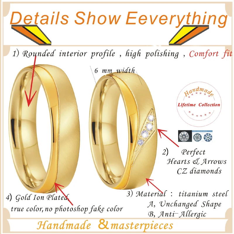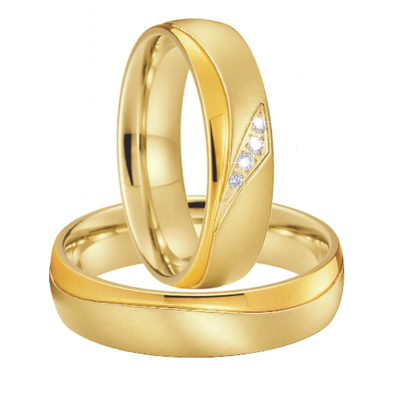 High Quality Western Wedding Rings Set for Couples African 18k Gold Plated Stainless Steel Jewelry Lovers Alliance 1 Pair
