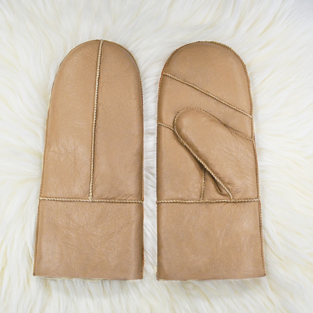 High Quality Women’s Leather Gloves Mittens Winter Keep Warm Hand Gloves Real Thick Fur Sheepskin