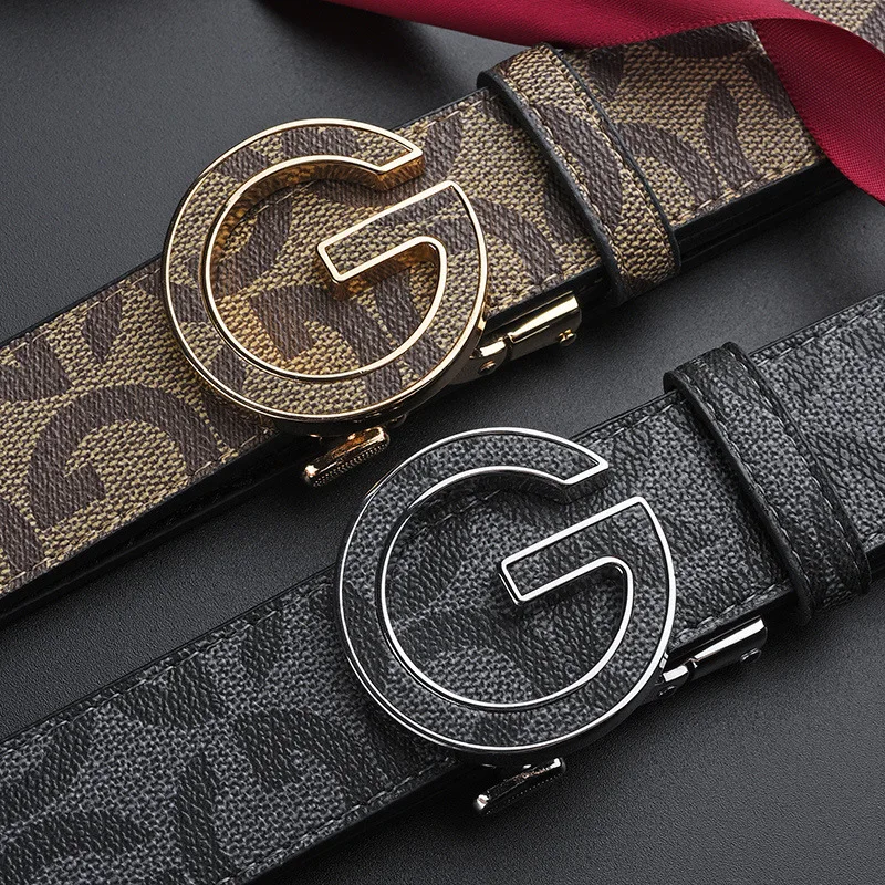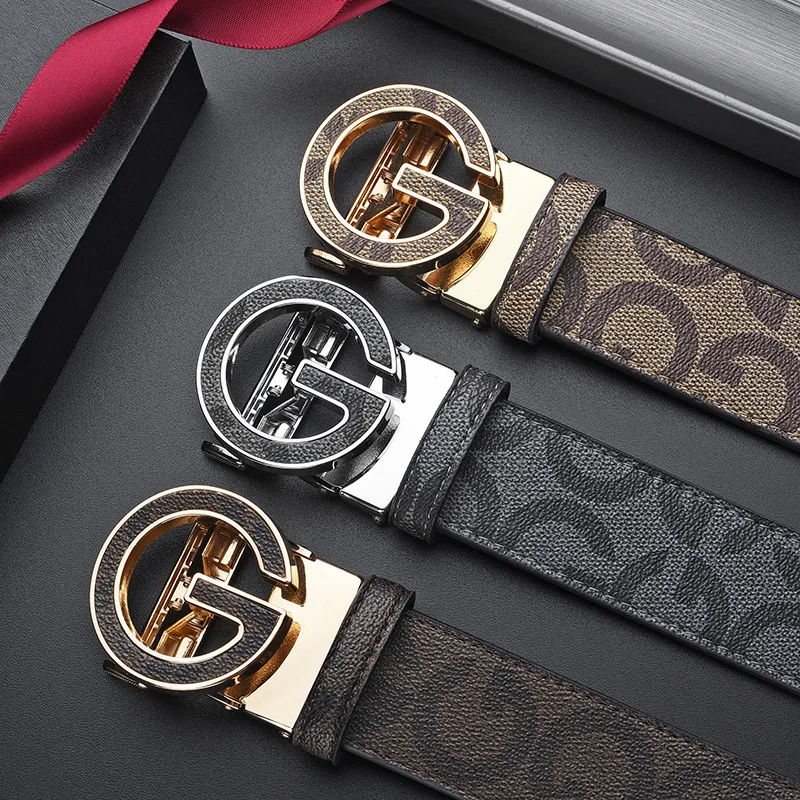 High Quality Work Business Strap Men Belts Metal Automatic Buckle Brand Leather Belt Men Famous Luxury