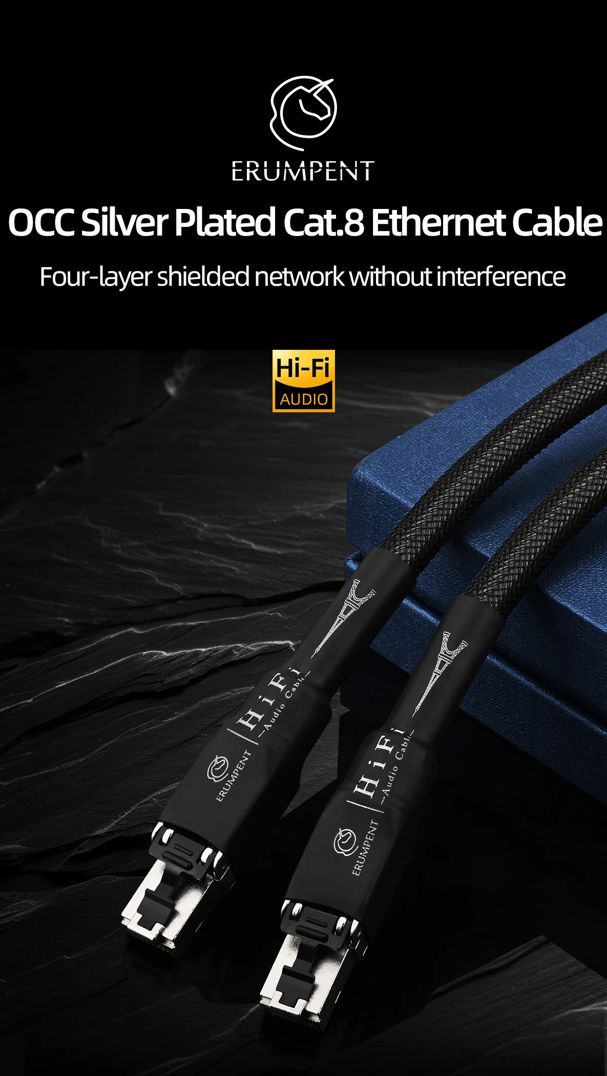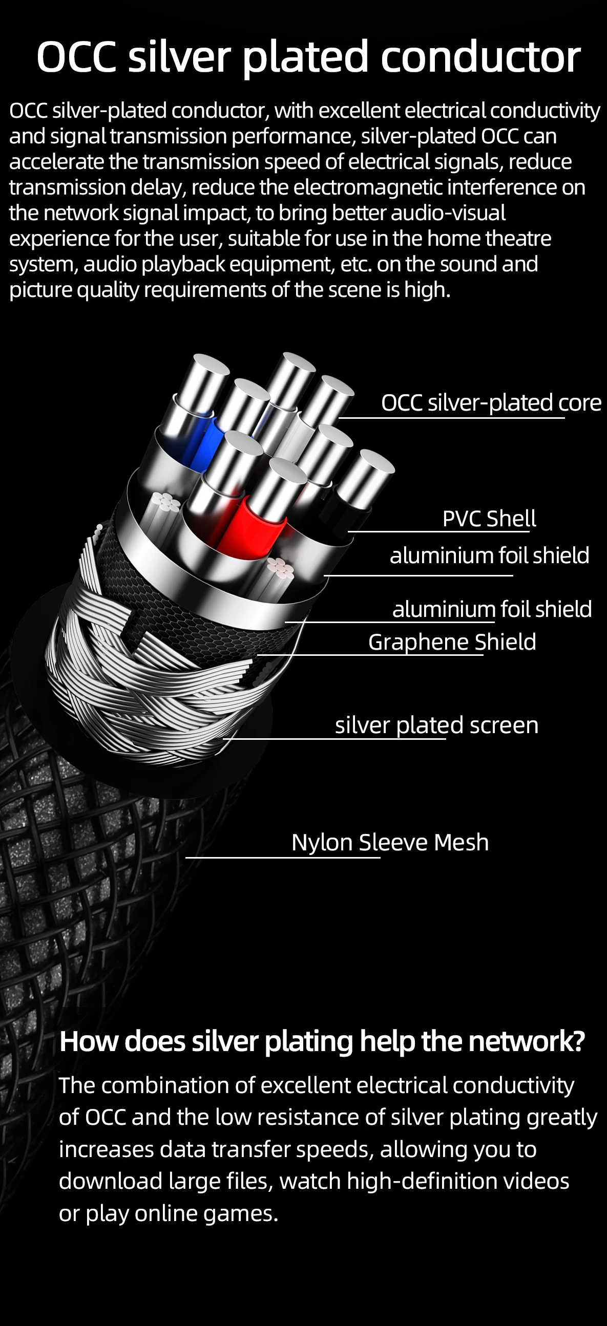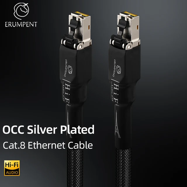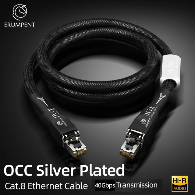 High Speed Silver Plated Cat 8 Network Cable 40Gbps 2000MHz Anti-Interference with Shield HiFi Audio