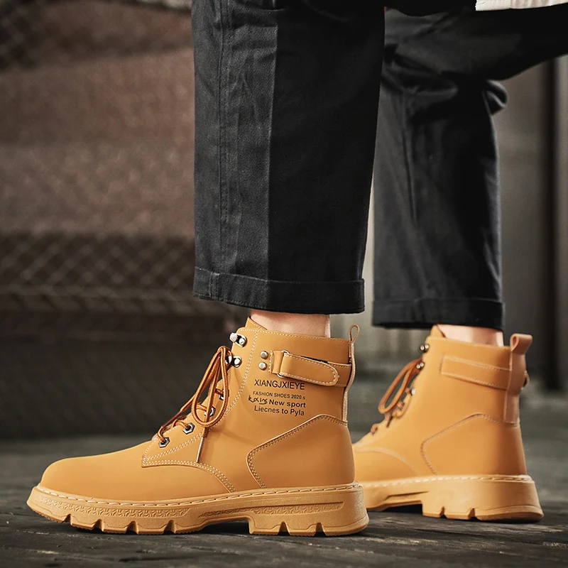 High Top Men Boots Leather Boots Winter Outdoor Casual Shoes Fashion Flat Work Boots Lace Up Non-Slip Men Ankle Boots Sneakers