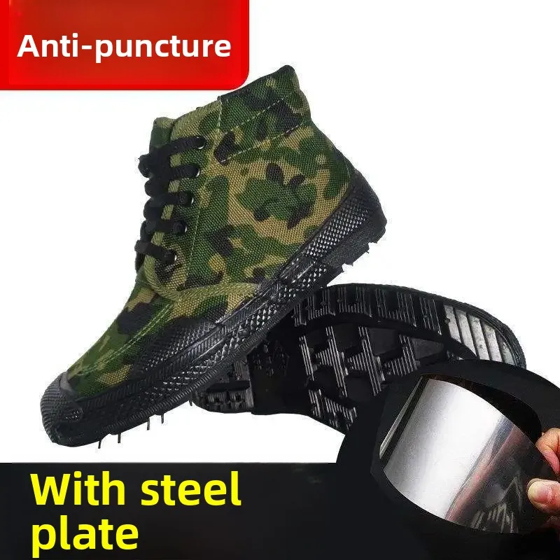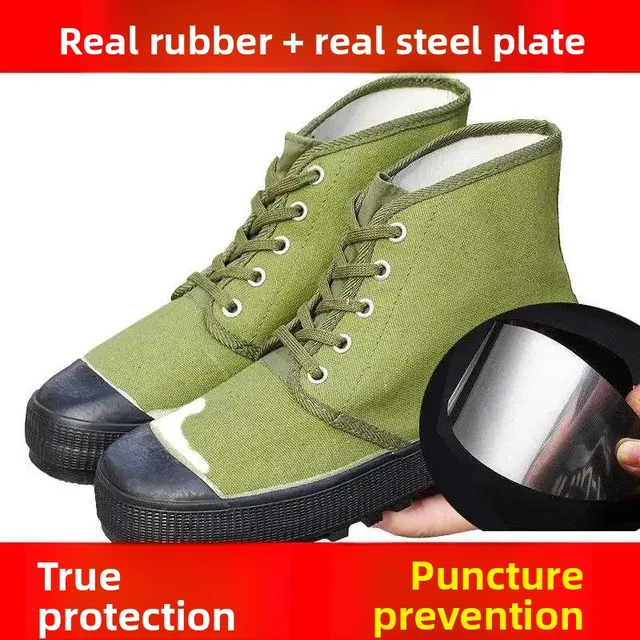 High-Top Men's Liberation Shoes Anti-Piercing Work Boots Canvas Uppers Rubber Soles Flat Bottom for Construction Sites