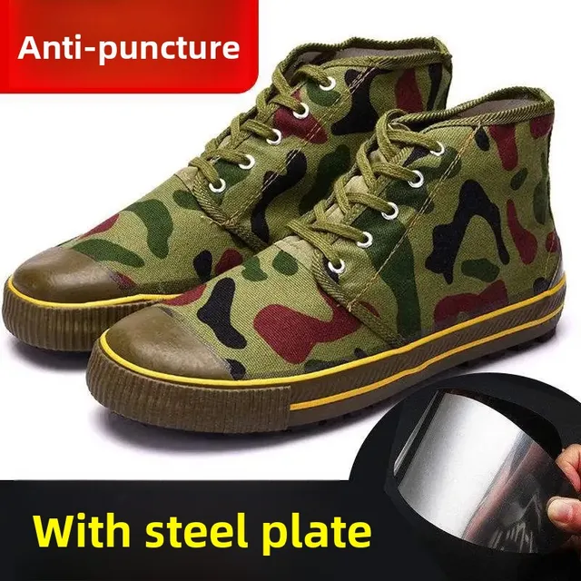 High-Top Men’s Liberation Shoes Anti-Piercing Work Boots Canvas Uppers Rubber Soles Flat Bottom