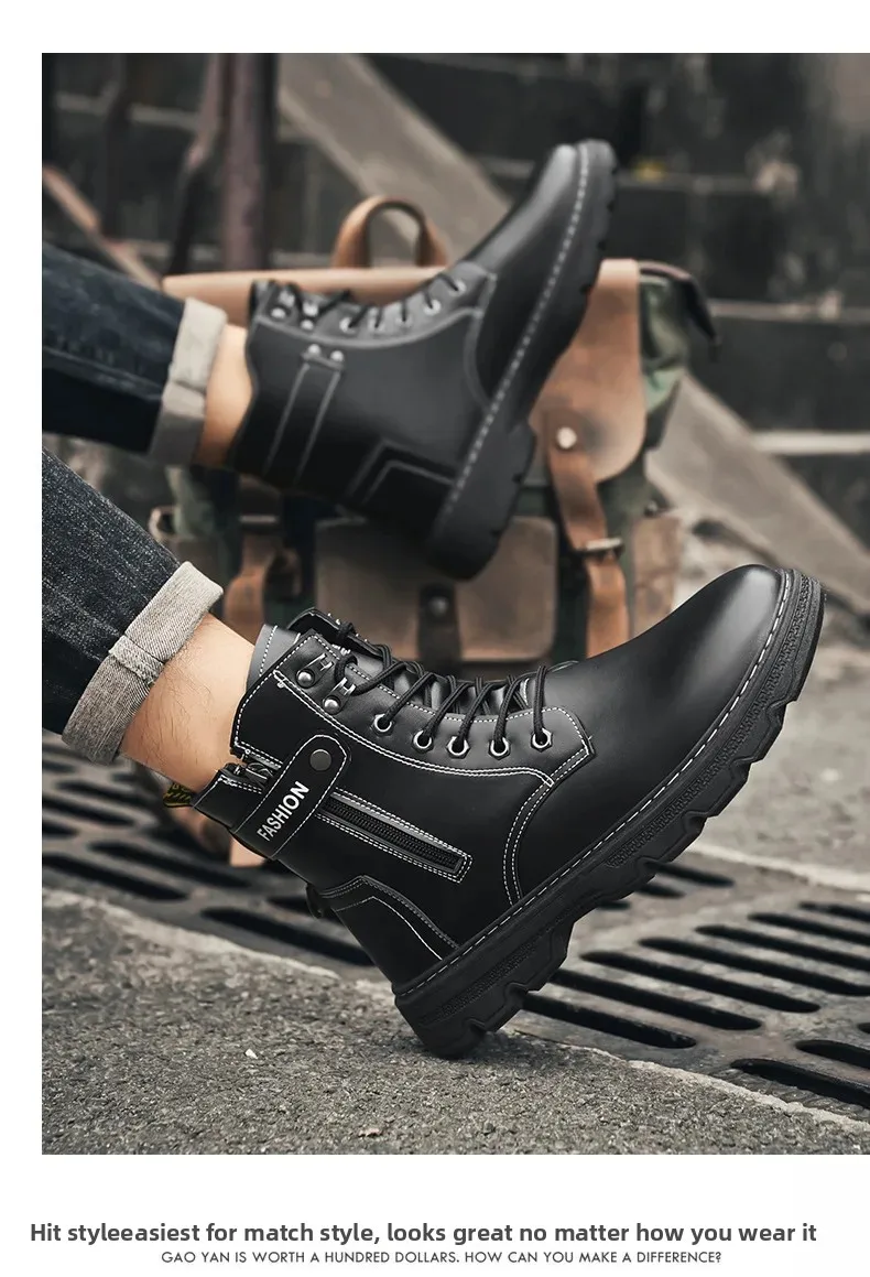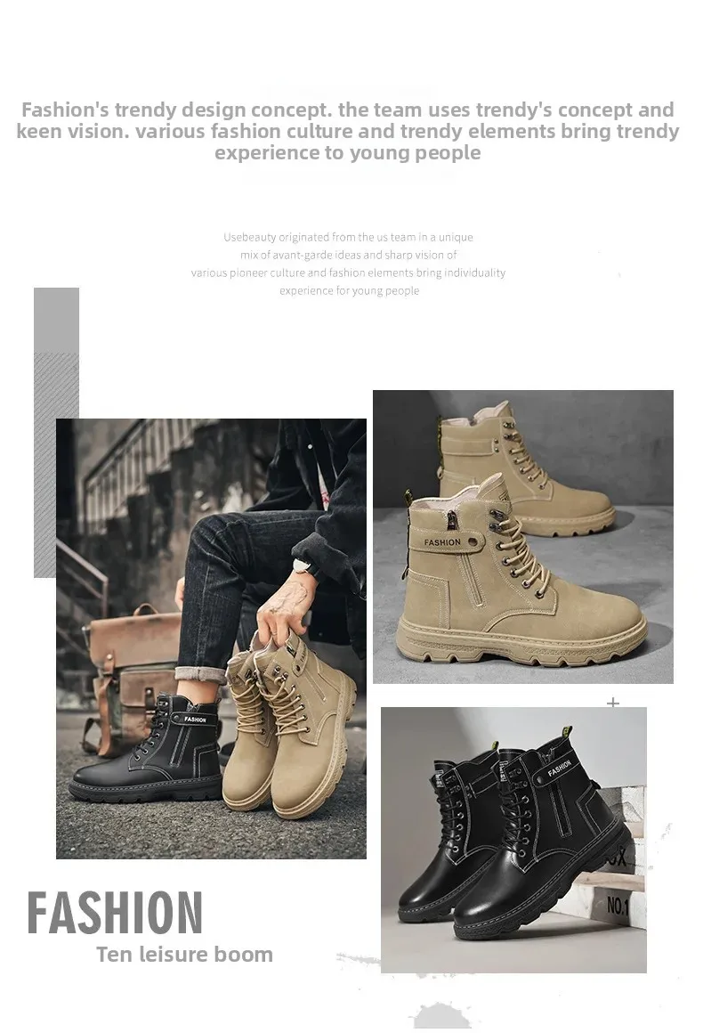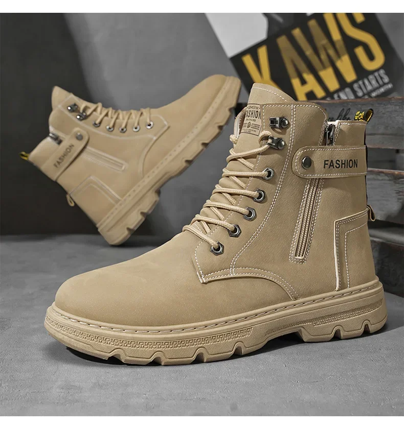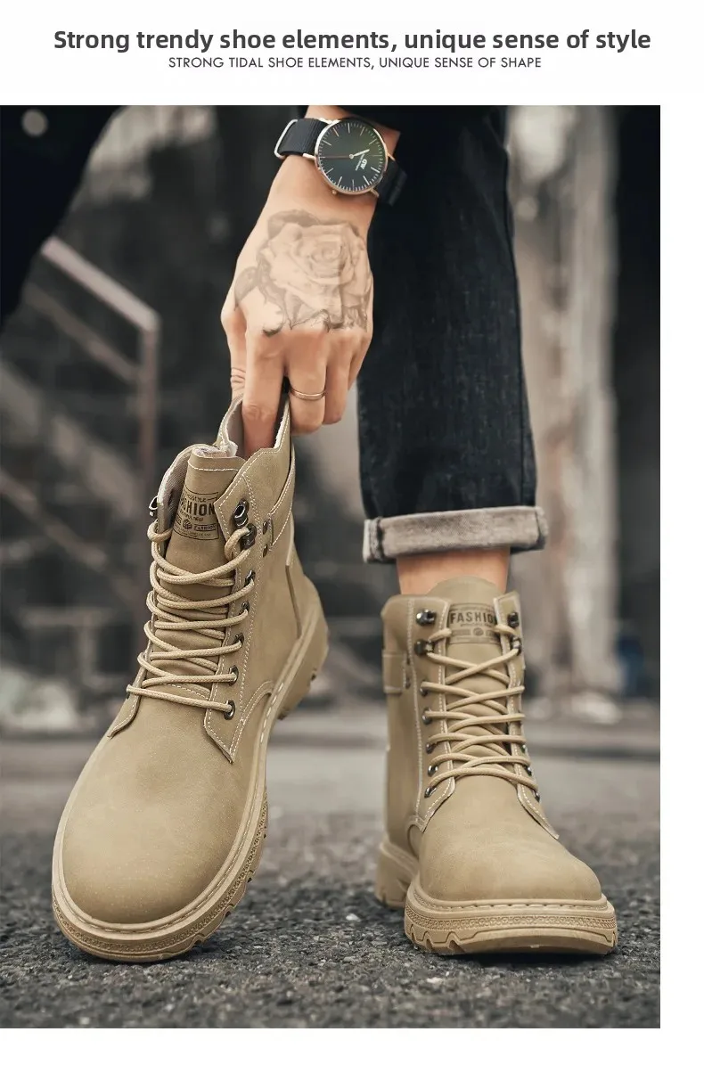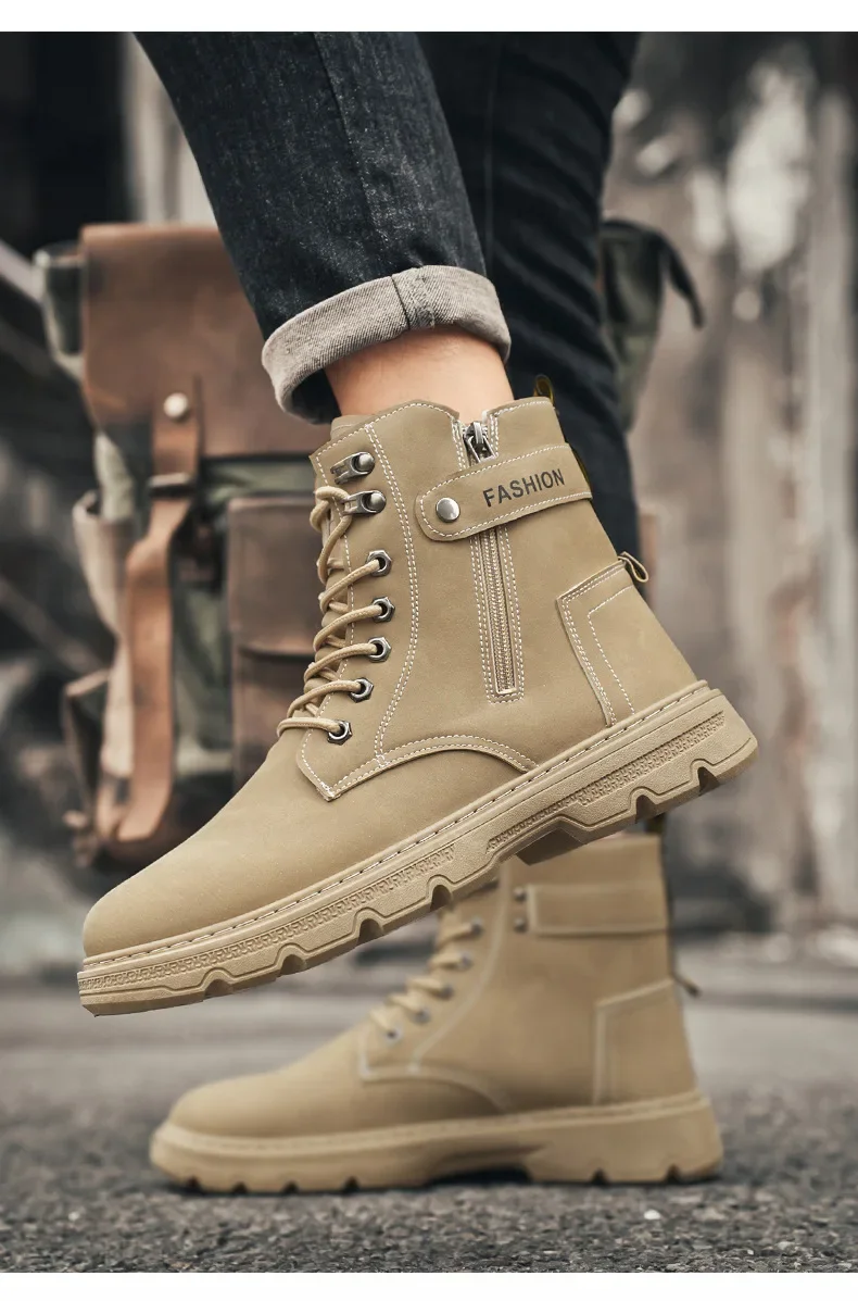 High-Top Men’s Work Boots Outdoor Climbing Motorcycle Sports Trend Shoes EVA Insole Material Male