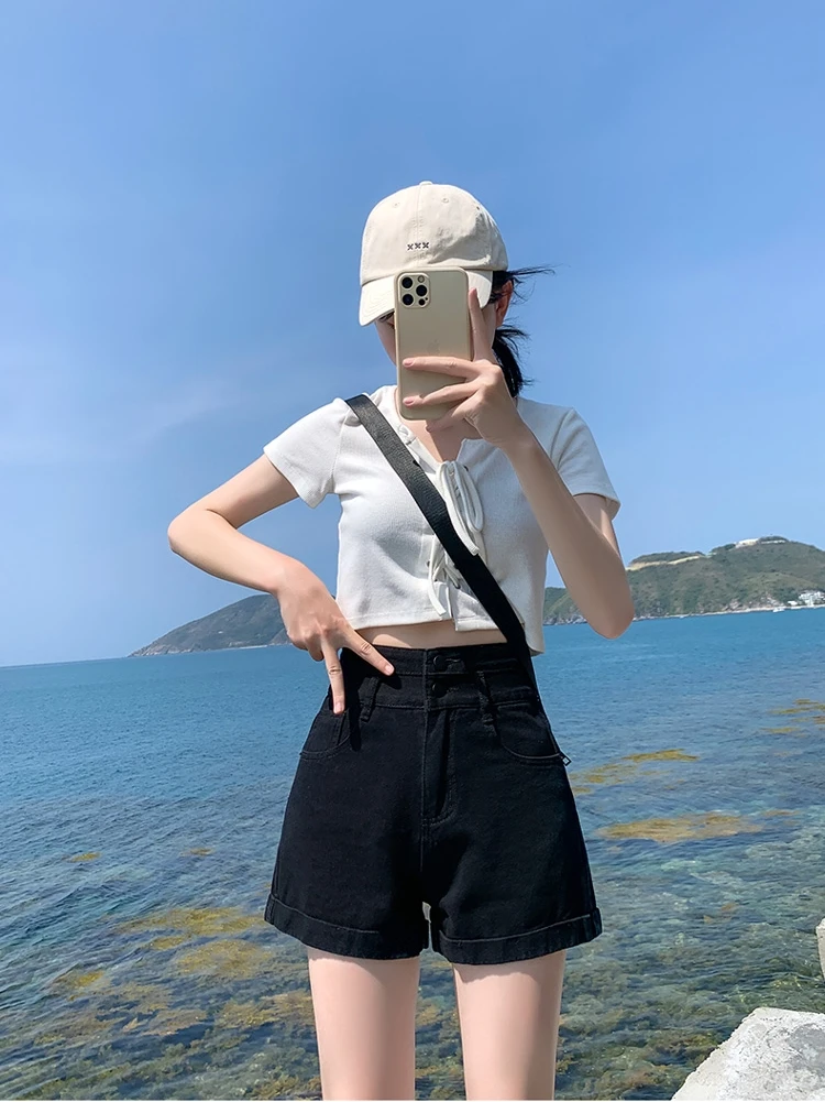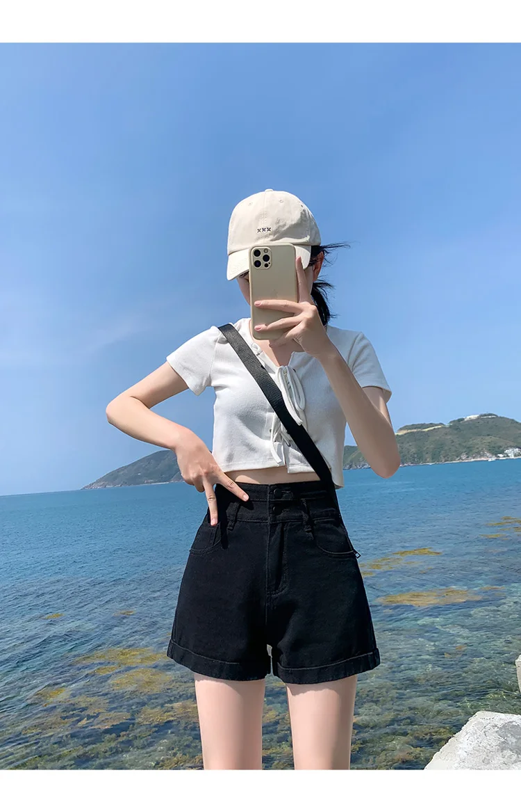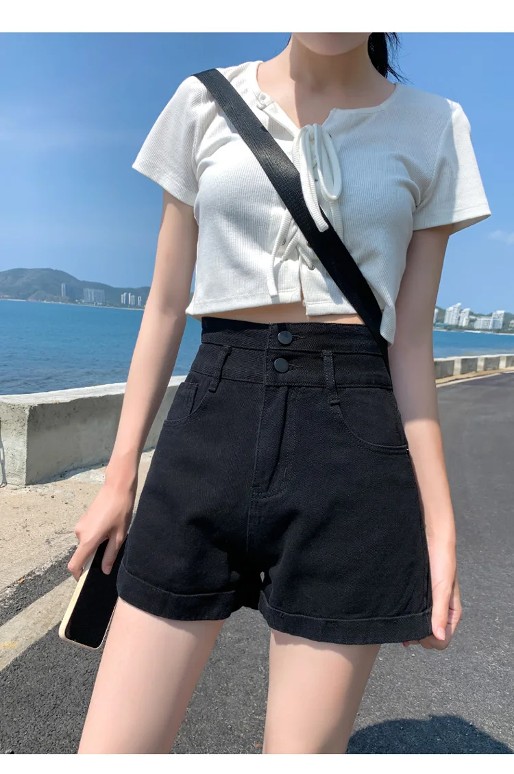 With their versatile black color and trendy ins-inspired design, these shorts can be paired with various tops to create different looks.