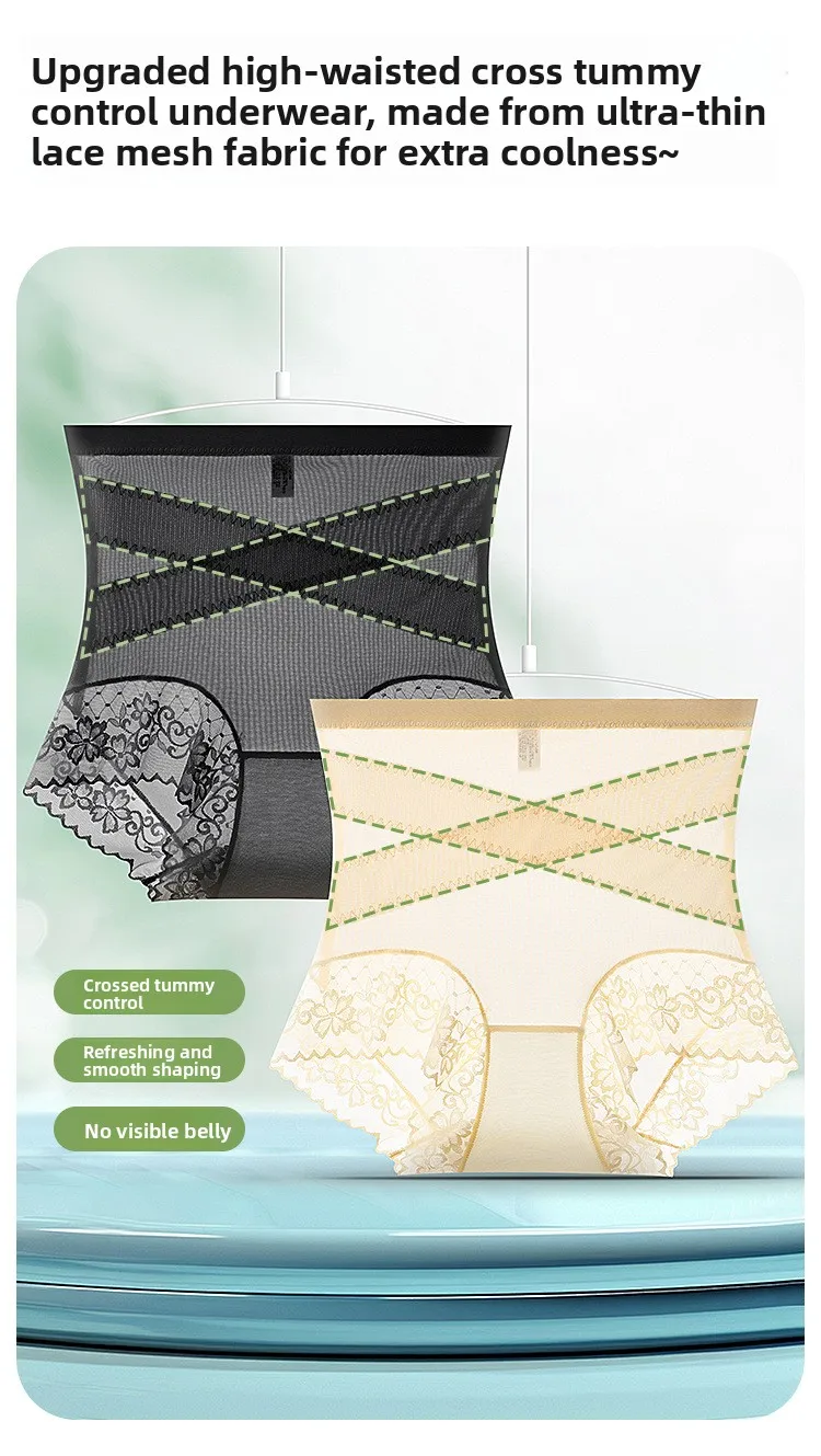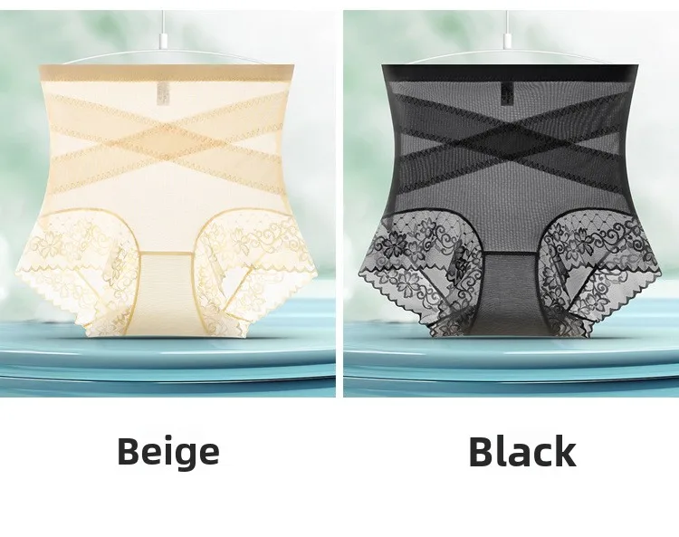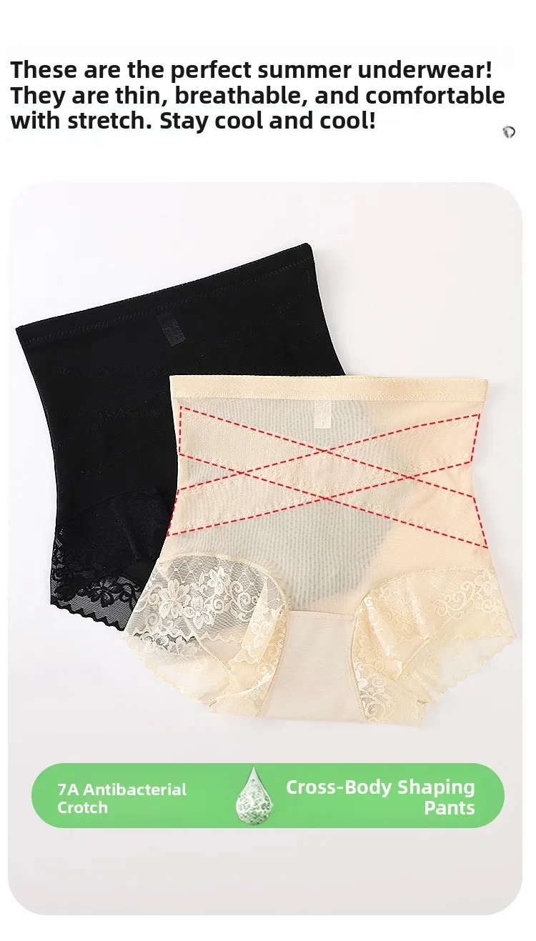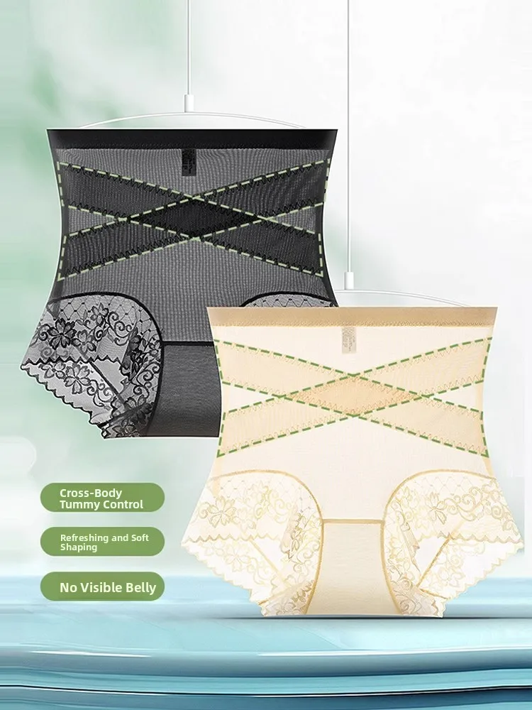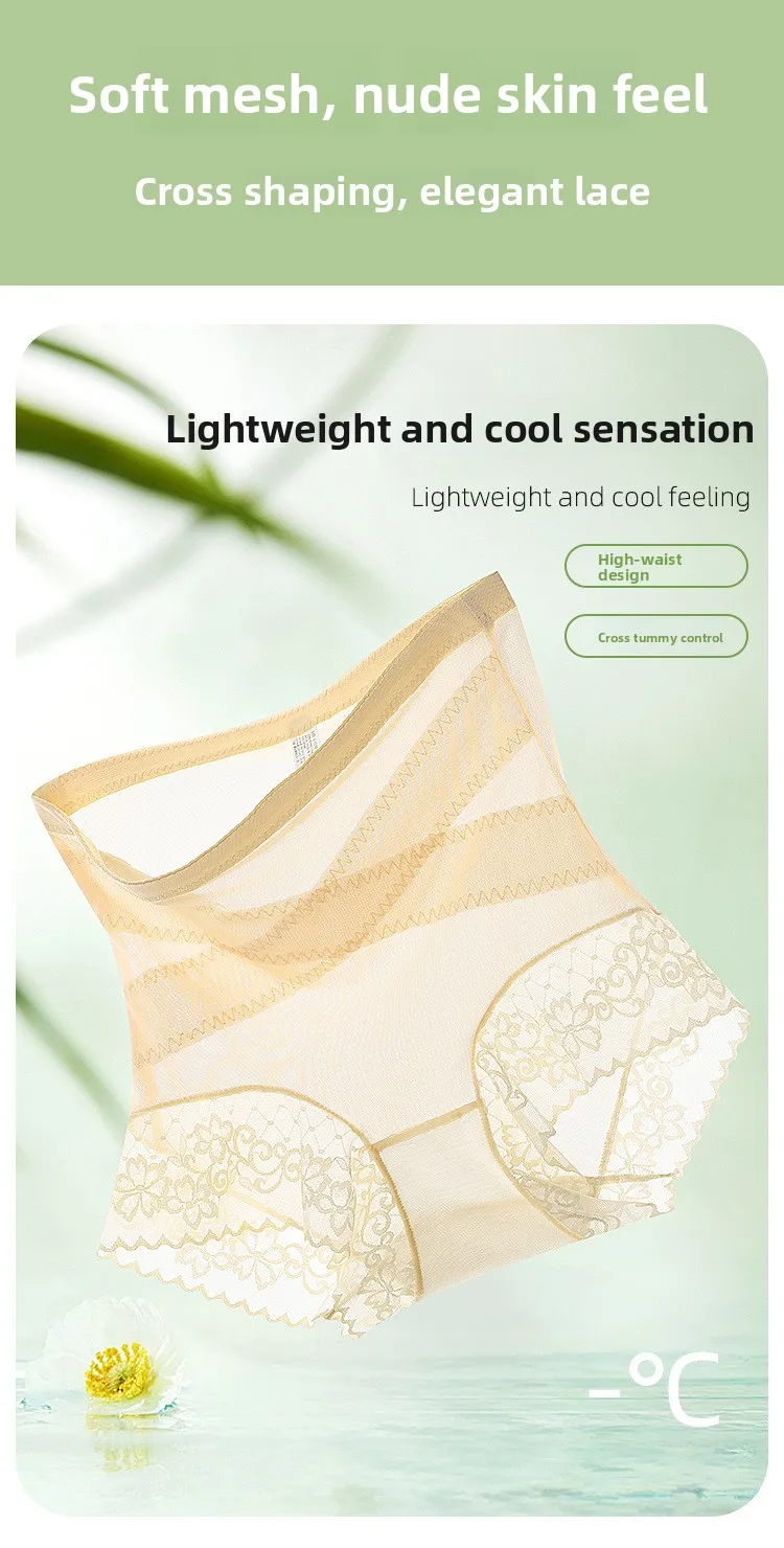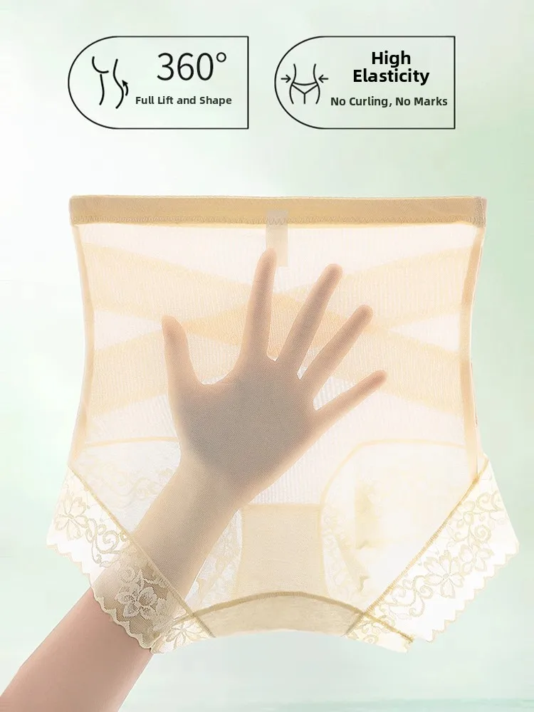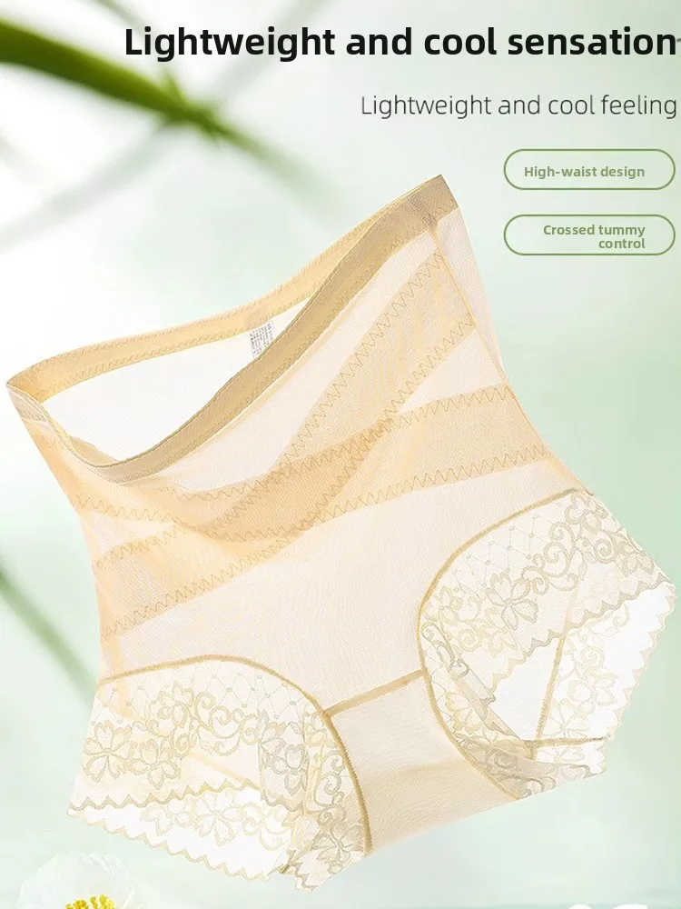 High Waist Abdomen Control Women's Underwear Silk Crotch a Thin Lace Butt Lifting Summer e Panties