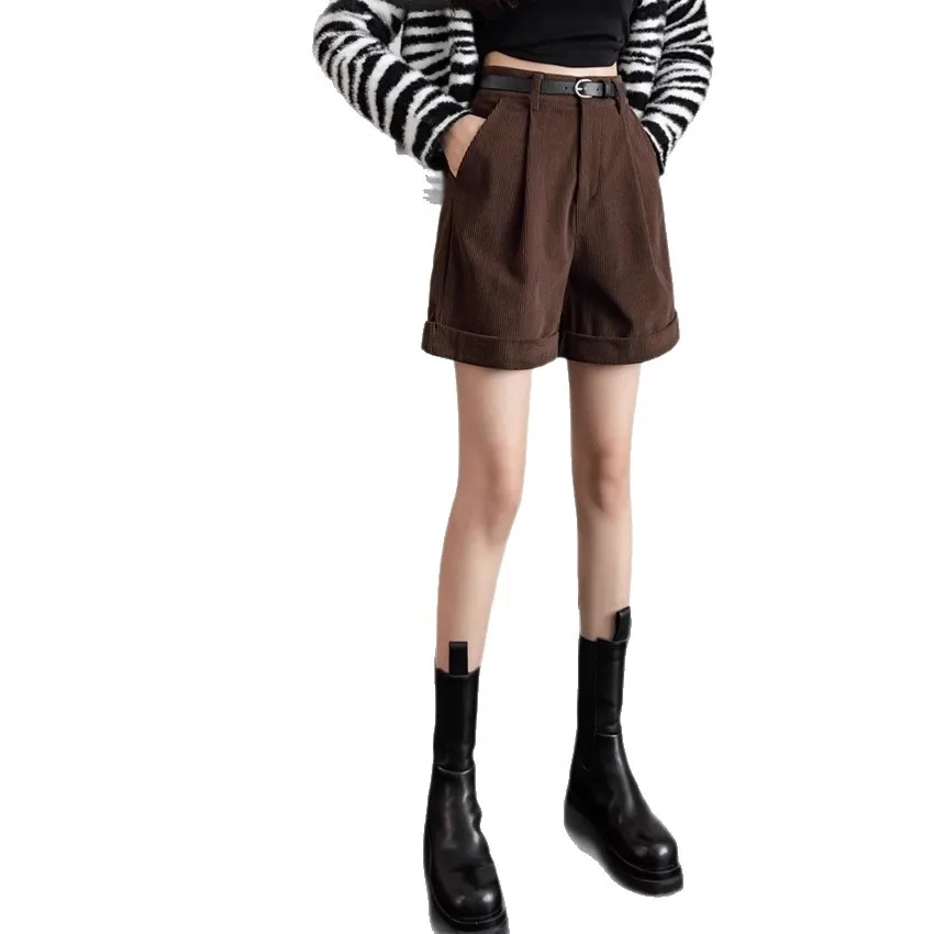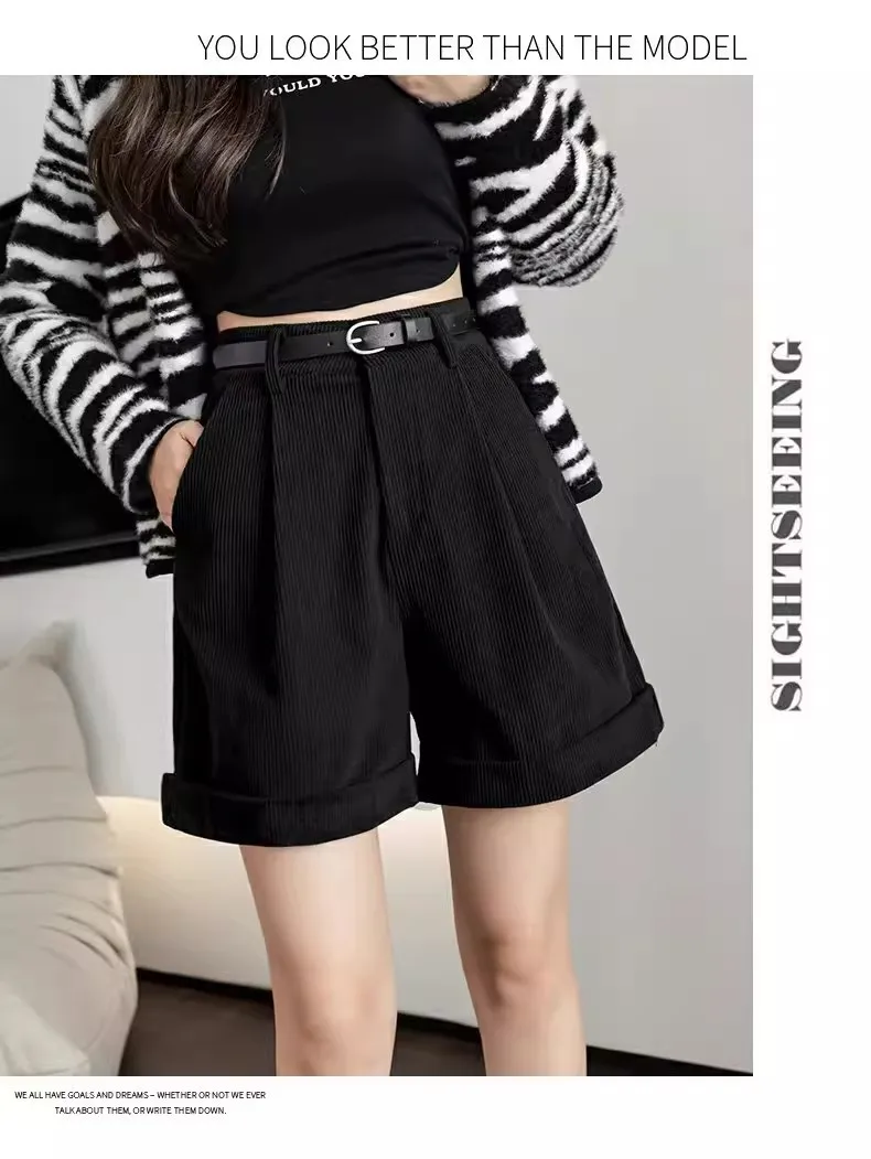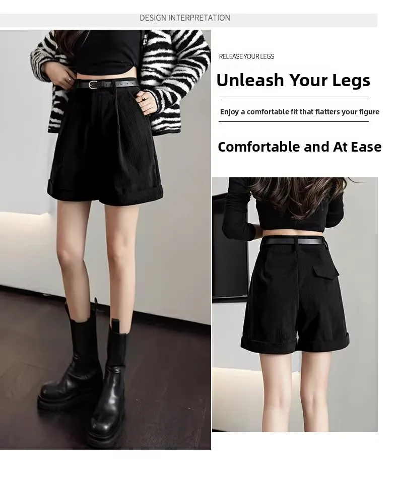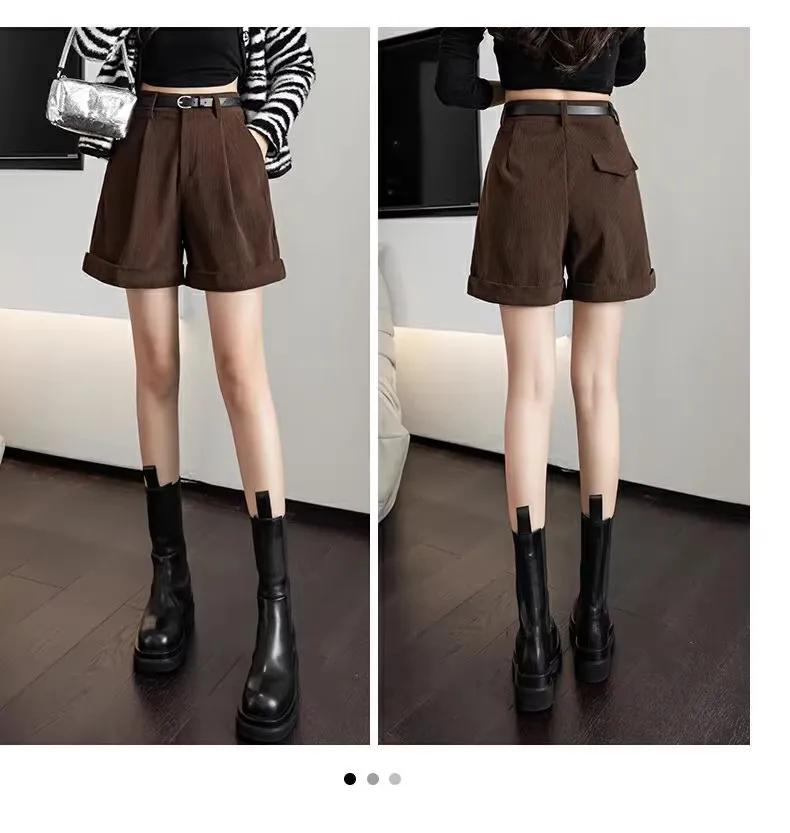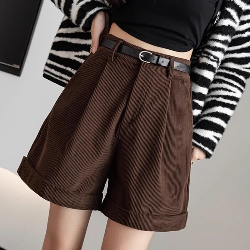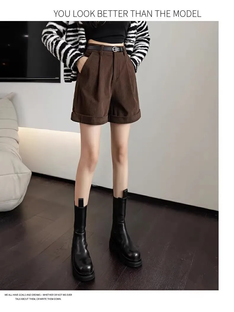 The high-waisted design of these corduroy shorts accentuates your figure, creating a slimming effect and adding a touch of elegance to your autumn wardrobe.