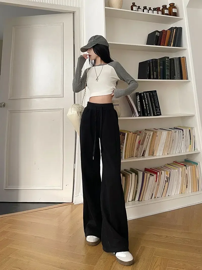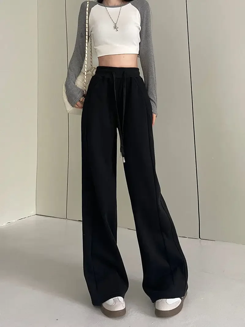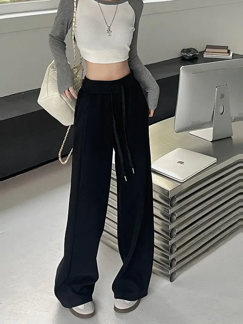 High Waist Drapey Wide Leg Casual Sports Pants Women’s Spring Autumn Winter plus Size Loose Fit