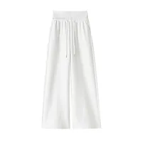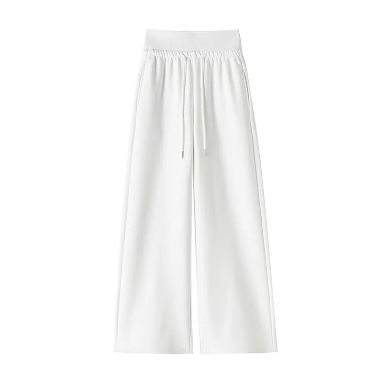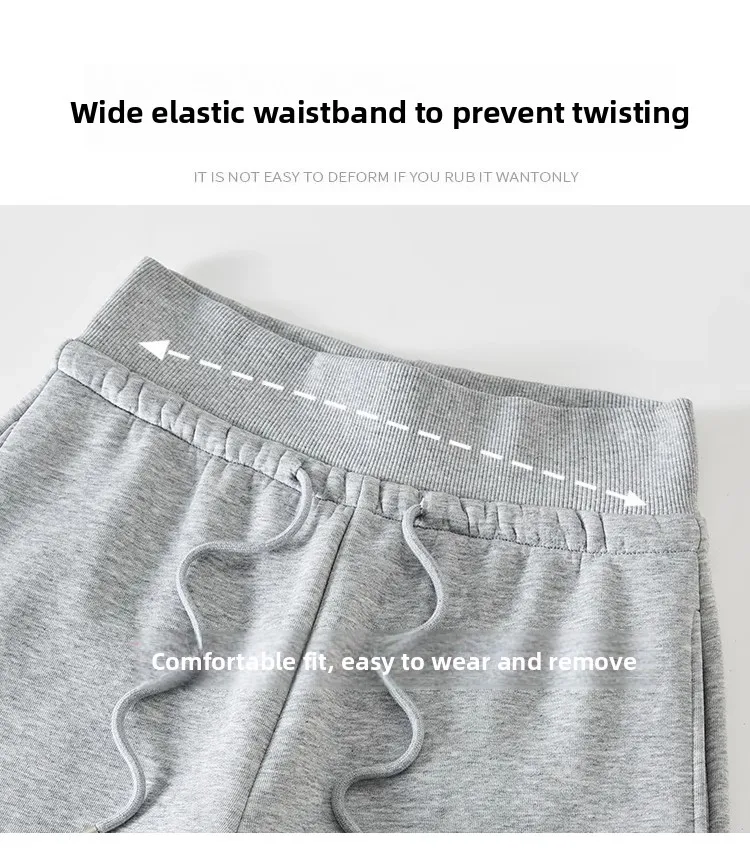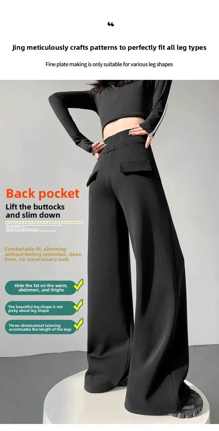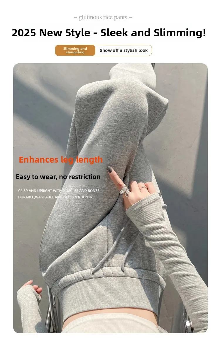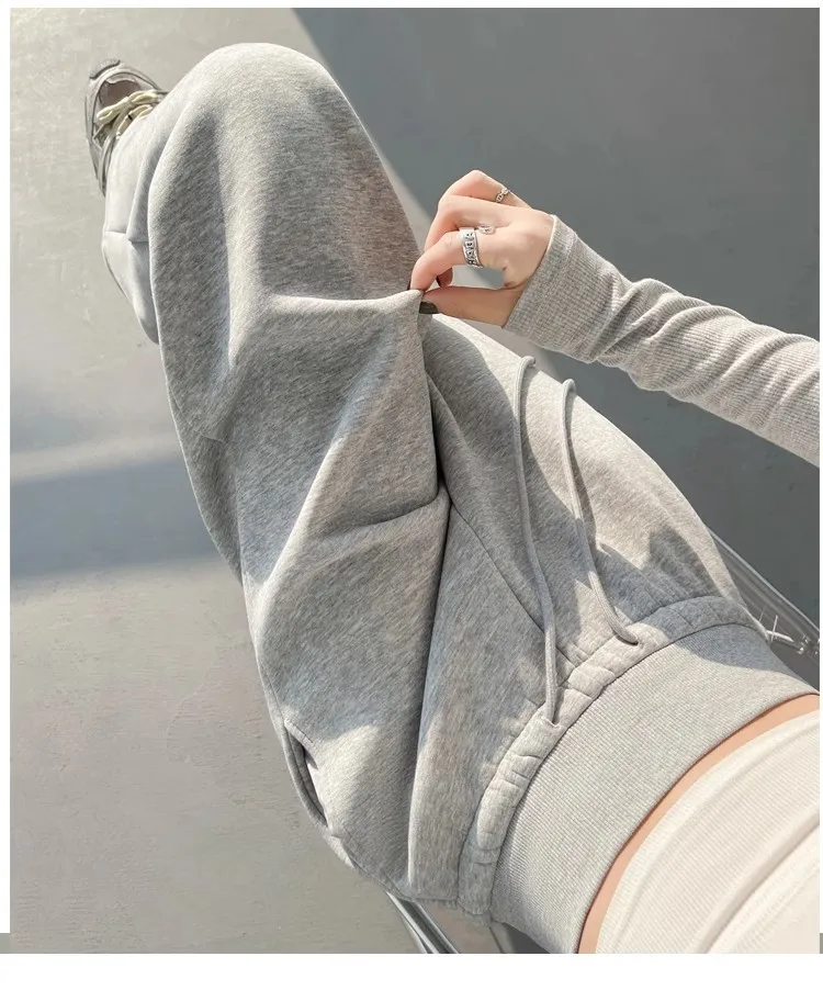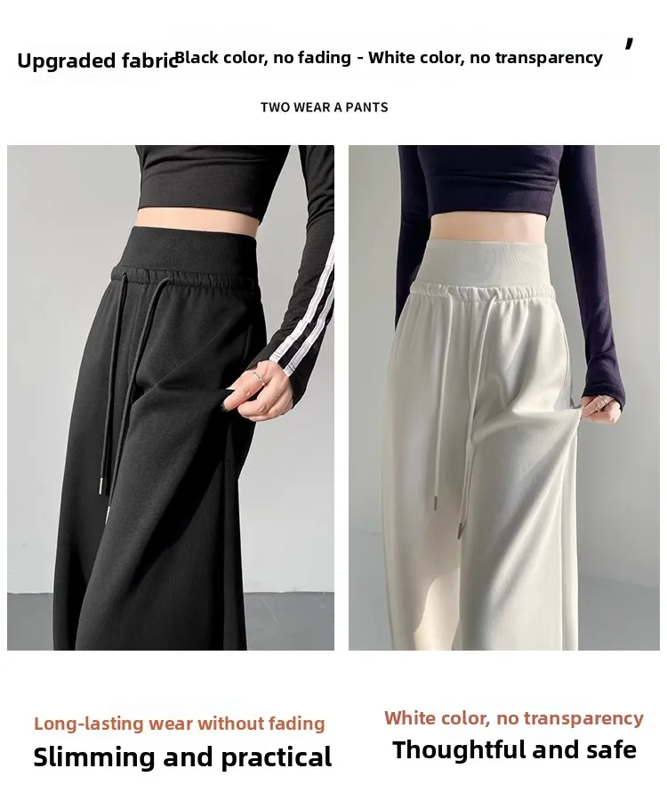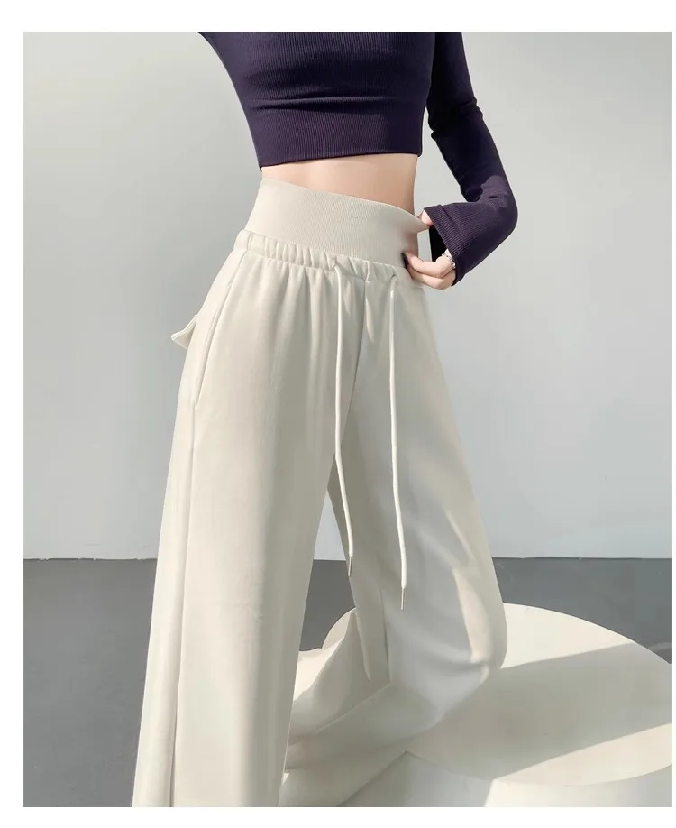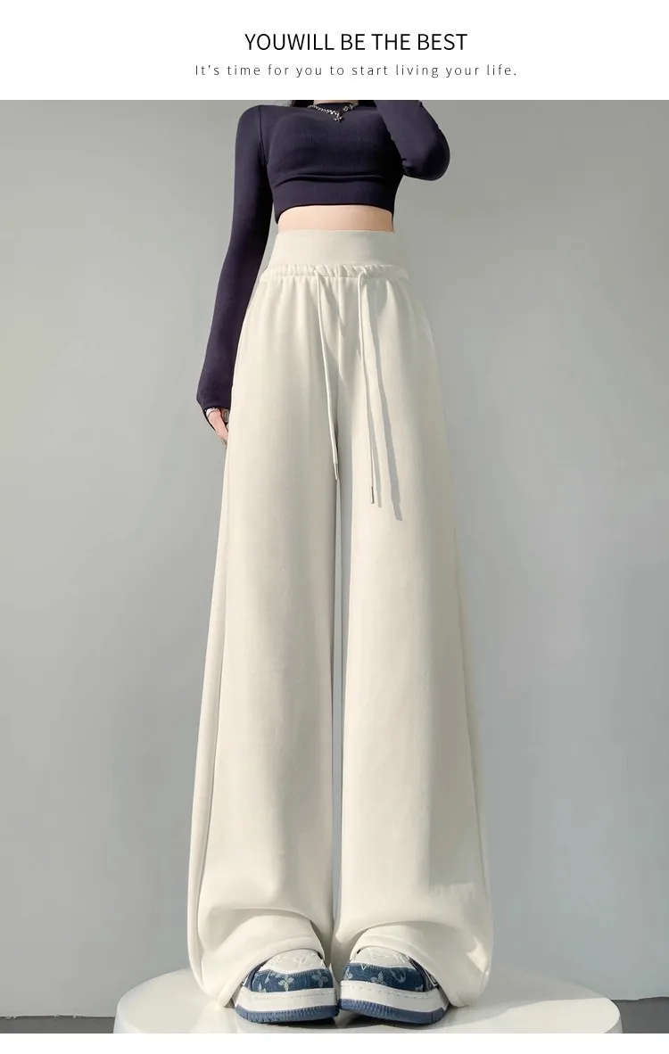 High Waist Grey American Style Sports Pants Women's Spring Autumn Tummy Control Casual Wide Leg Straight Loose Floor Length S...