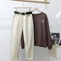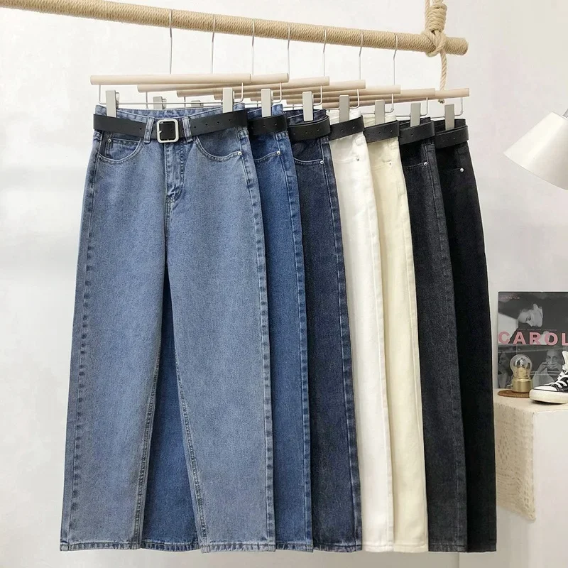 High Waist Harlan Denim Jeans Women Students Straight Leg Loose Slimming Spring Autumn New Style Old