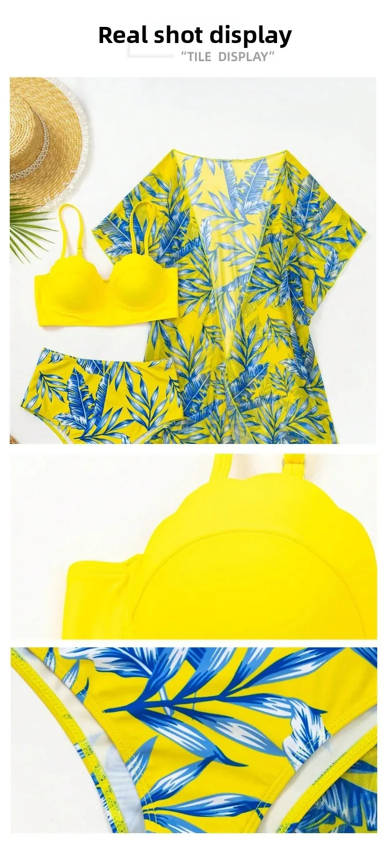 • Custom Cross-border Design : This bikini set features a unique cross-border design, offering a fresh and trendy look for swimwear enthusiasts.