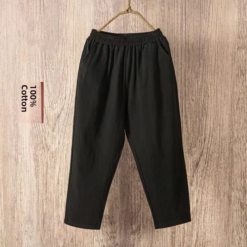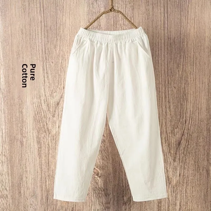 High Waist Loose Cotton Linen Women’s Pants Casual Harlan Nine Point Slimming Breathable Thin Linen
