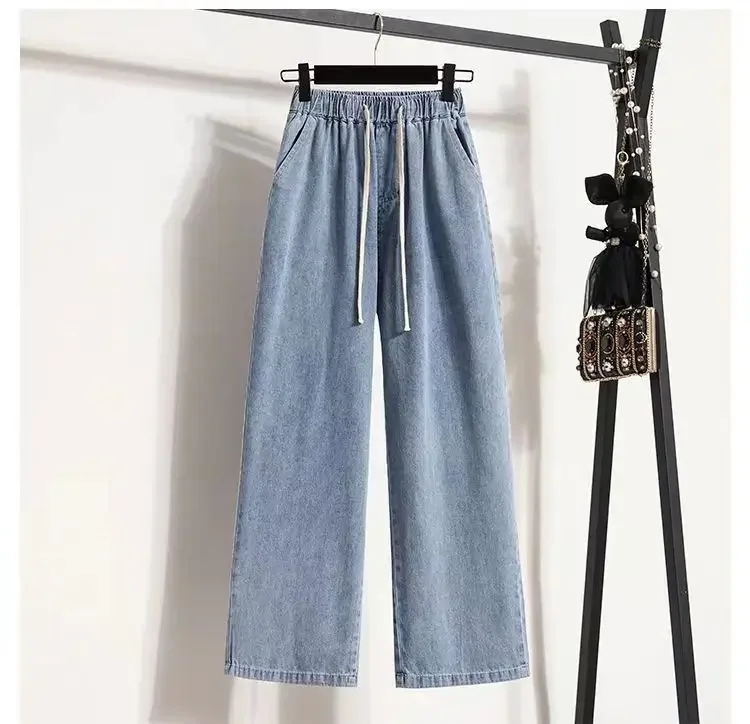 High Waist Loose Fit Spring Summer Denim Jeans for plus Size Women Straight Leg Fashionable Pants Slimming