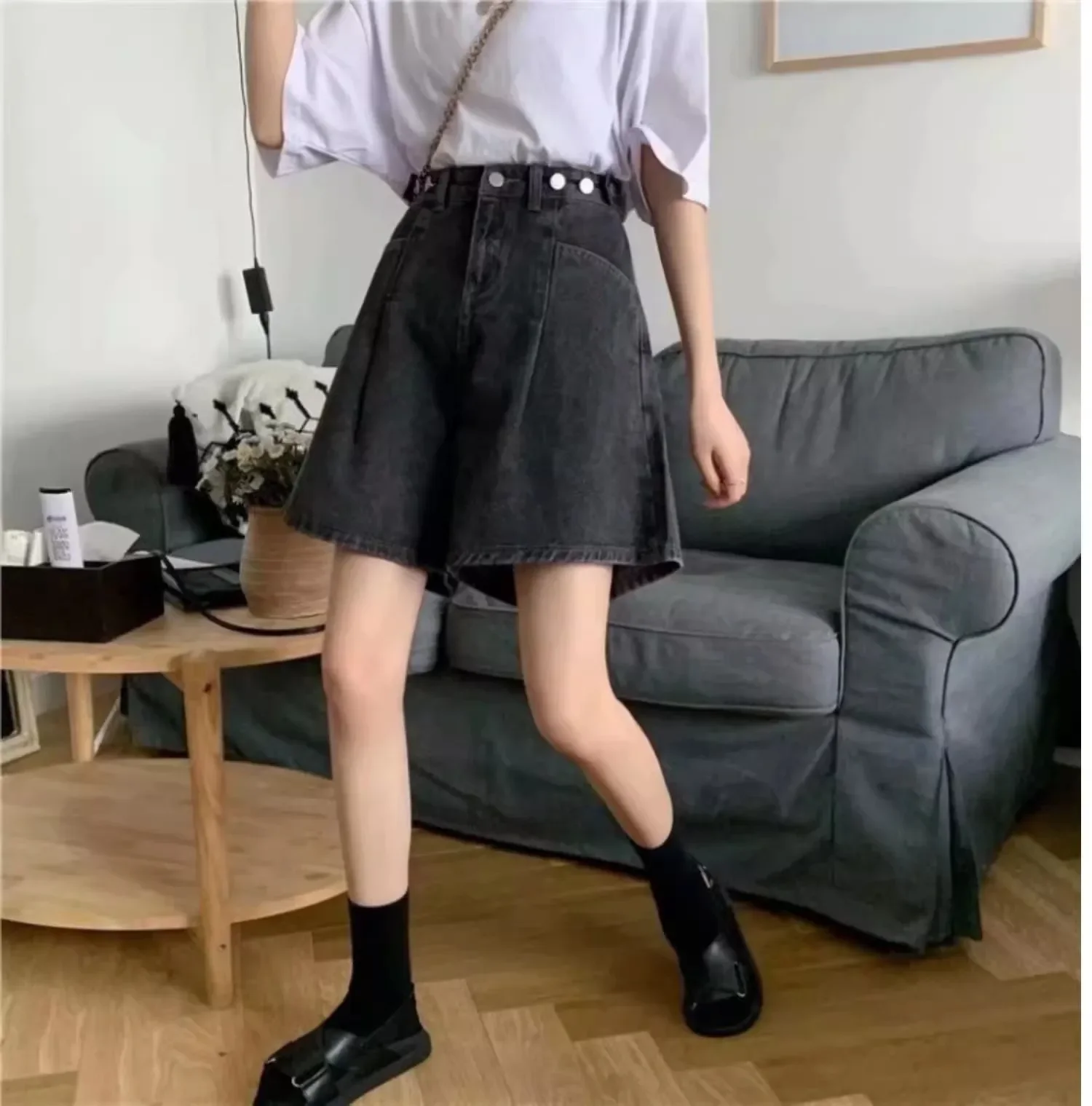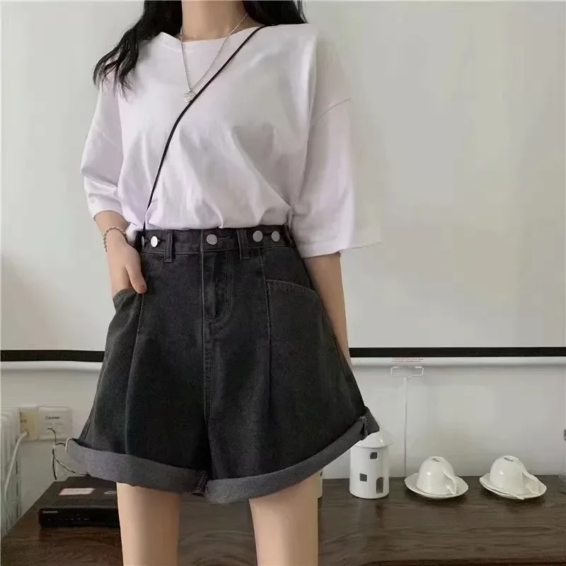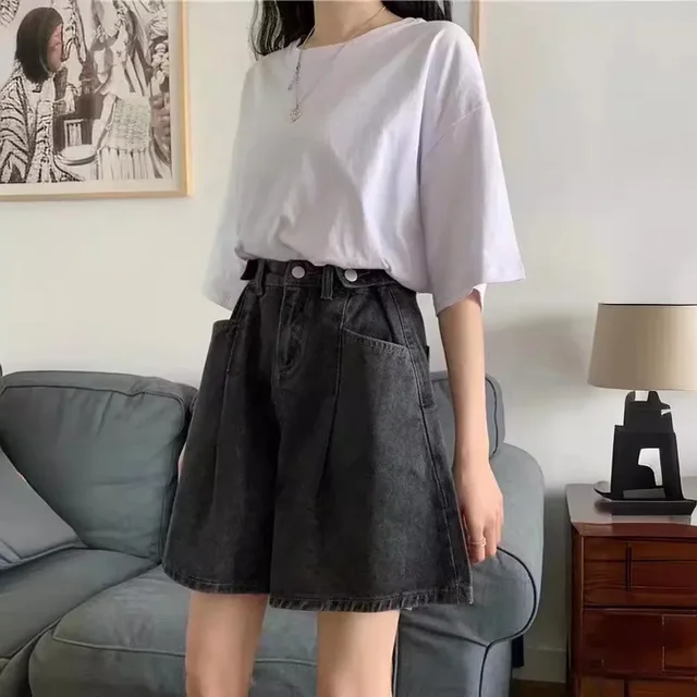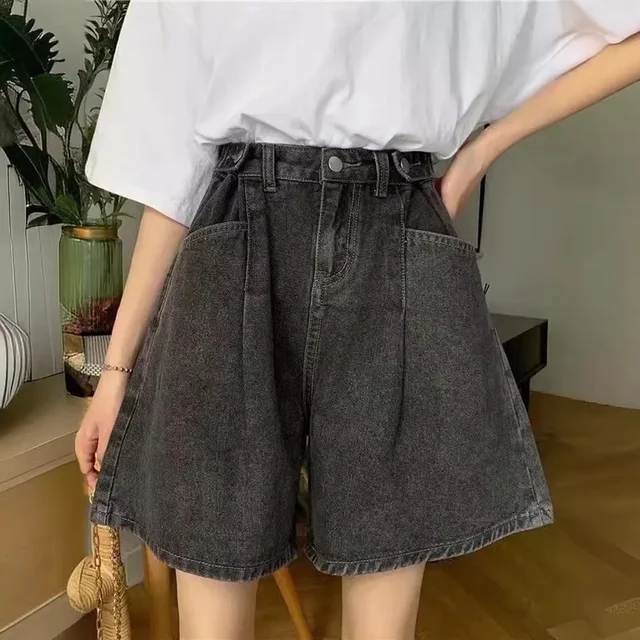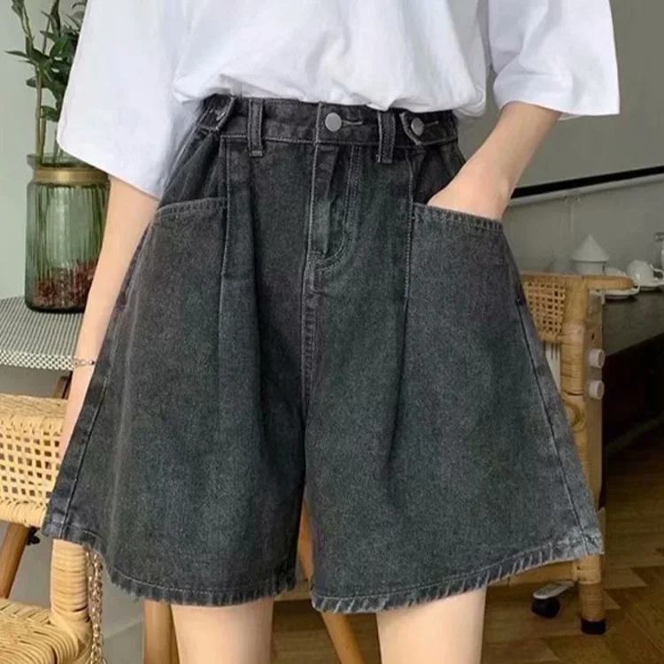 High Waist Loose Women's Jeans Shorts Slimming Effect Korean Style Summer Vintage Cotton Low Waist Shorts for Women