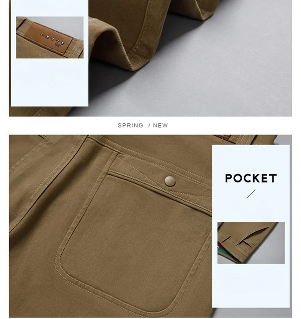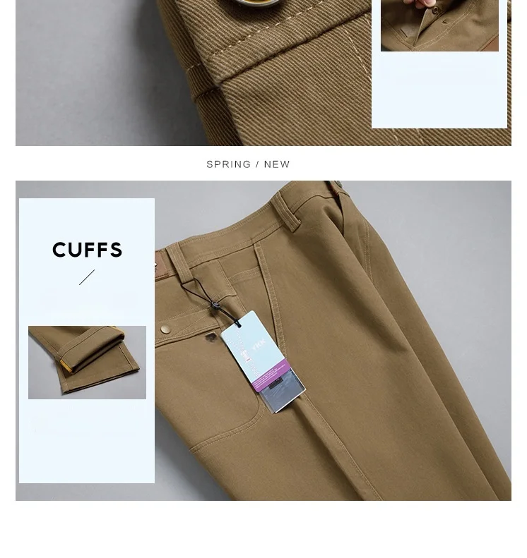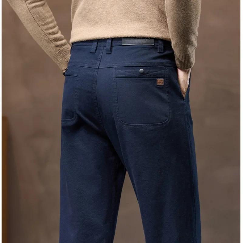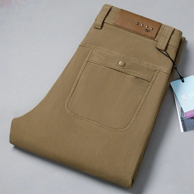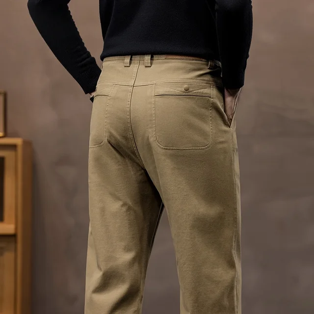 High Waist Mens Pants Casual Black Khaki Blue Straight Stretch 97% Cotton Trousers for male Autumn 2025